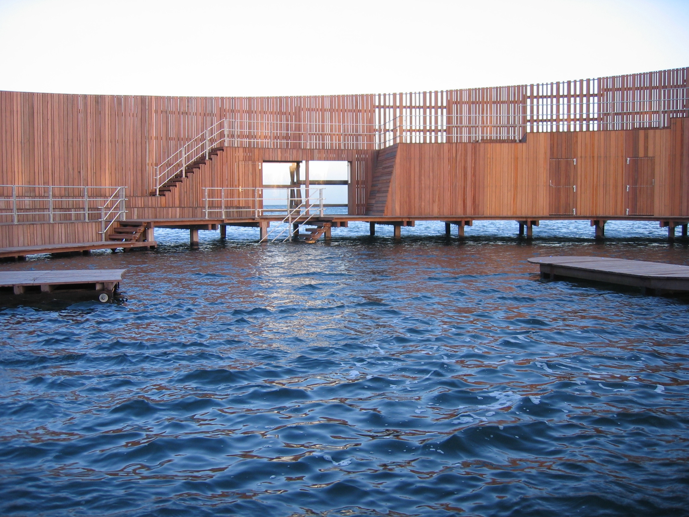 A sculpture to walk on. And dive from. The architect responsible, Fredrik Pettersson, has produced a creation standing on discreet legs one metre above the surface of the sea, a hundred metres out from the shore.