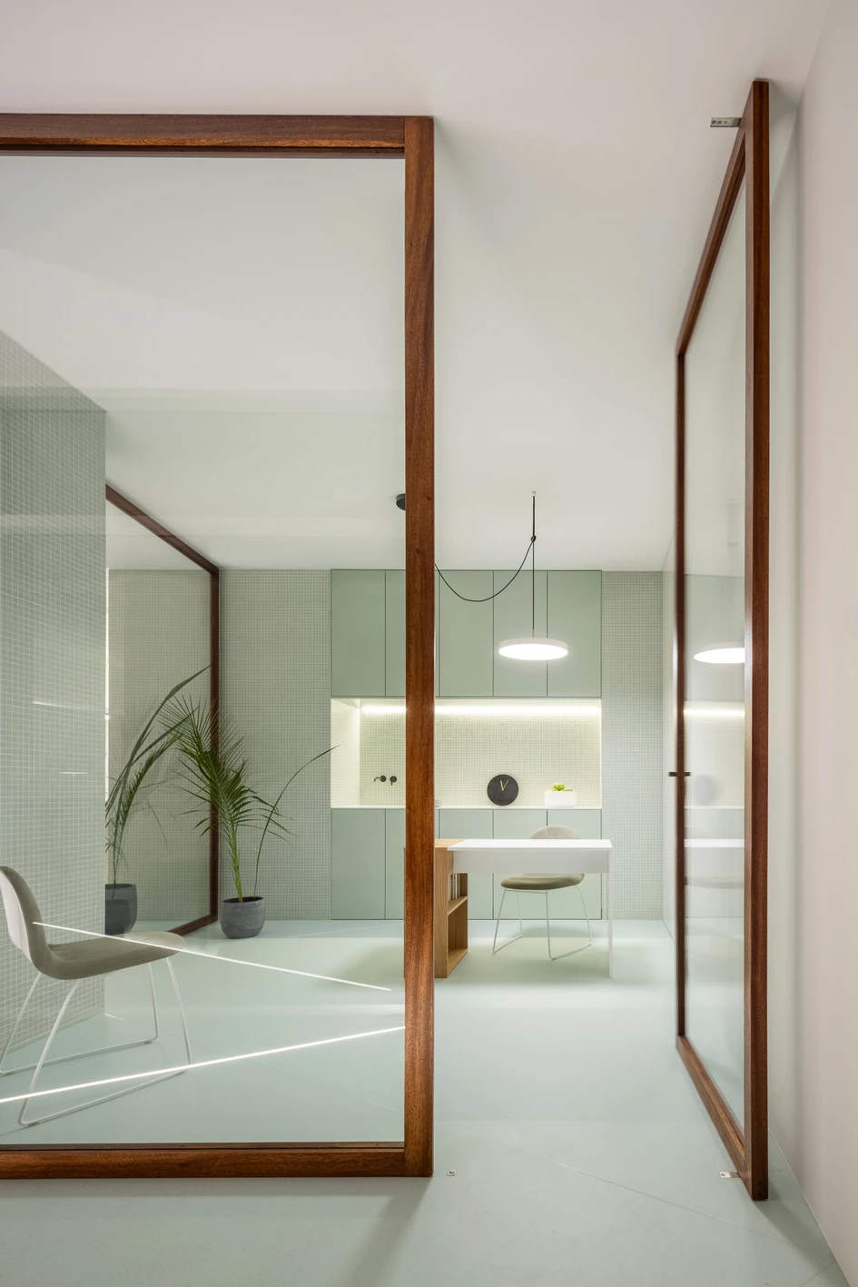 The space is composed of a treatment room, an office and a common area that is characterized by its calm and welcoming environment where permanece is in itself contemplative and seductive.