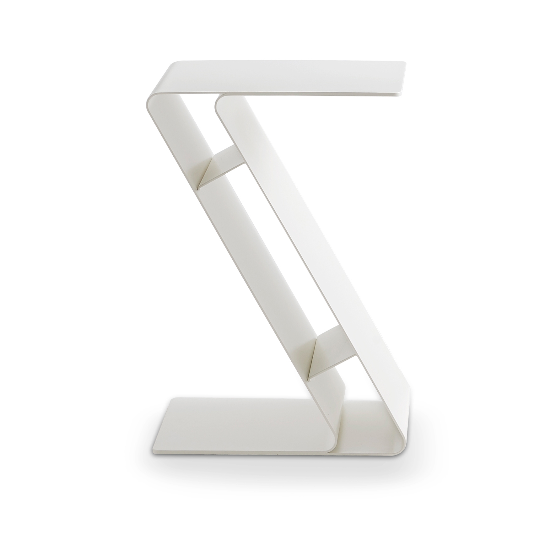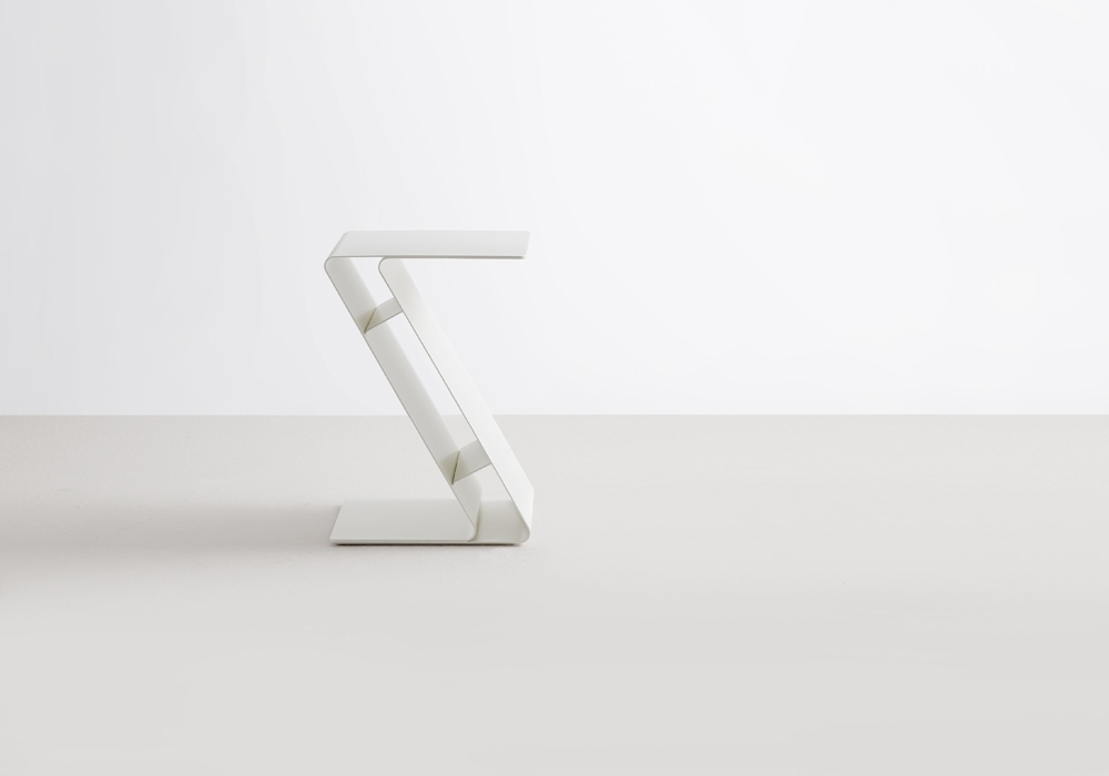 TIP is an iconic side table with a practical interior shelf. Inspired by the Rietveld chair ZigZag, but absolutely different in its execution. Two identically shaped aluminum sheets are welded offset each other. This results in three slim inner trays for magazines, tablet, etc. Designed by Philipp Günther Design for Mox.
