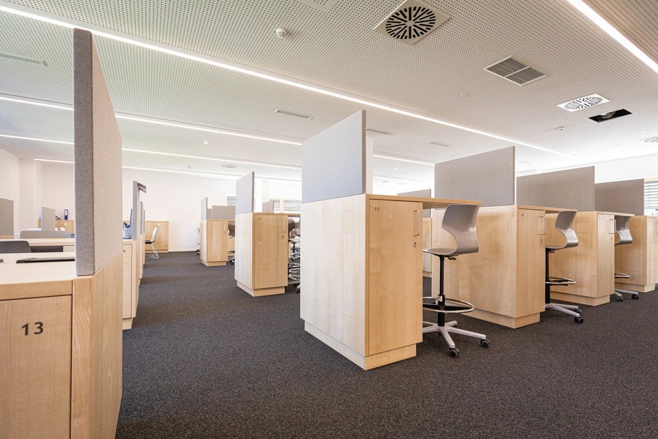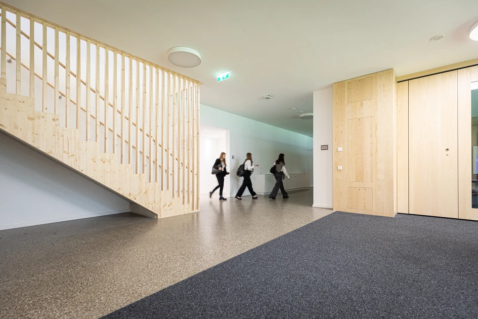 In September 2023, a new building for the well-known tourism school in Klessheim near Salzburg opened. It was built using sustainable and innovative construction methods. The aim was to create an open and modern educational campus with a perfect learning environment for the future talents of the tourism industry. This was realised by architect Max Rieder. The open-plan room concepts allow for better communication and encourage individual work. To support these good communication conditions, the textile floor covering Kugelgarn® in the quality Resista® Cosmic monsun and Graffiti volcan were installed in the learning areas. This not only fits in with the impressive learning concept, but also with the low-energy construction method in which the building was constructed. Photovoltaic systems and heat pumps are used as well as concrete core activation for environmentally friendly heating and cooling of the building. An extremely durable and hard-wearing floor covering perfectly complements the concept. The result is, in their own words, the ‘most modern school in Austria’.