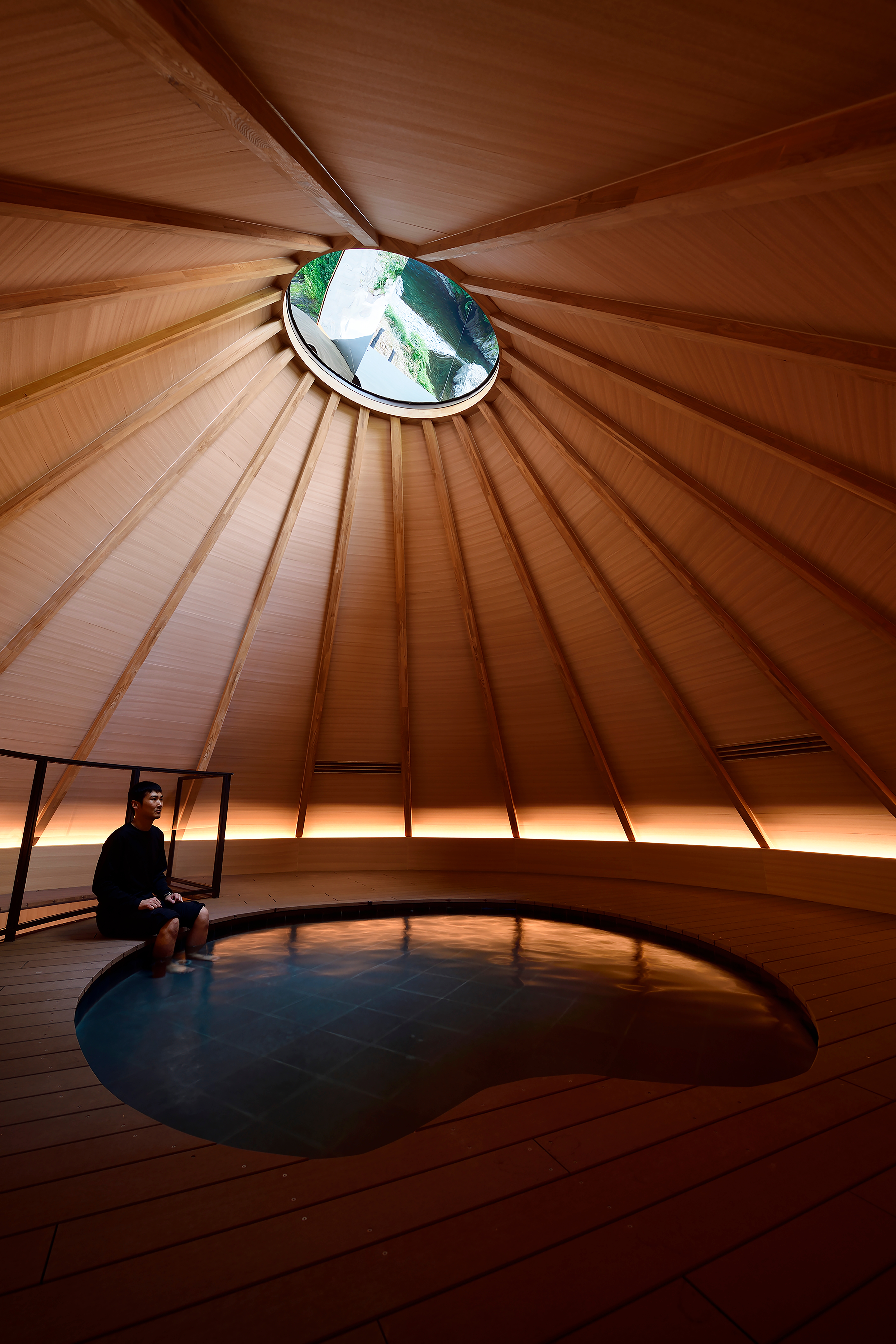 As part of the 2018 program, MAD Architects was invited to revitalize the Kiyotsu Gorge Tunnel – a historic, 750-meter passageway that cuts through rock formations, offering panoramic views over one of Japan’s three great chasms. Drawing on the ‘five elements of nature (wood, earth, metal, fire, water), MAD transformed points along the historic tunnel through the realization of several architectural spaces and artistic atmospheres. The designs reimagine the relationship between humans and nature and reconnect locals and visitors alike with their surroundings.