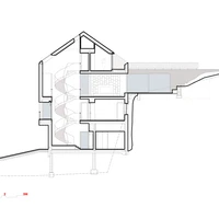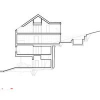 All three structures have two regular residential floors and an attic. The bottom floor serves as the entrance for both houses, while the middle apartment building has common facilities and access to the central exterior staircase, which, together with the elevator, serves the entrance floors of the residential units - two duplexes and two penthouses. The investor's family villa is characterised by a different of the garden area, where the main house accompanied by the volumes of an indoor pool and an outdoor kitchen with vegetated roofs defining a terrace between them.