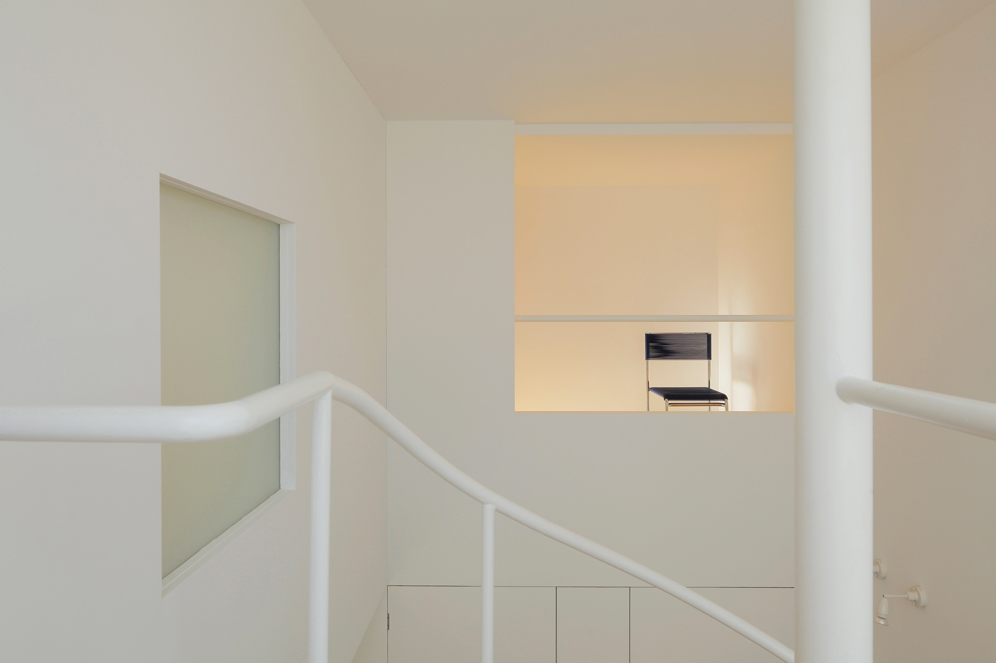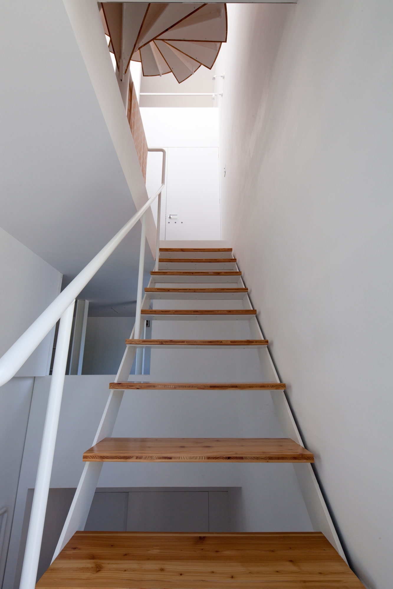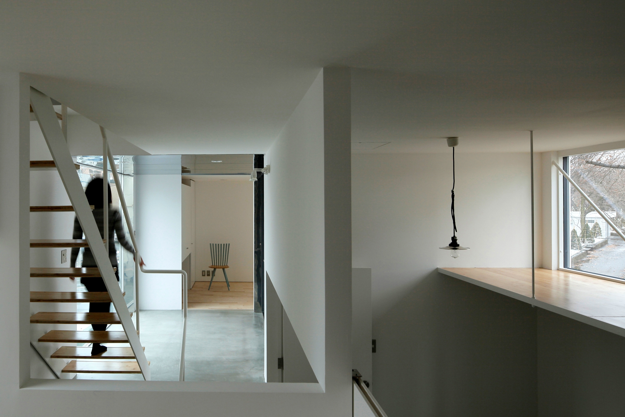 This house stands on a small wedge-shaped site with a frontage of 5.4m and area of 88㎡. The eastern side of the site is a 20m-wide busy road, and the southern side faces a green park with a baseball field and tennis courts. Before this house was built, scenes of the park already existed: children on the playground, old people walking their dogs, or ginkgo trees that dramatically change their expression as the seasons progress. It is intended for “White Collage” to form a collage of the existing everyday scenes and the new scenes that are born from building this new house, and to create one unified scene.