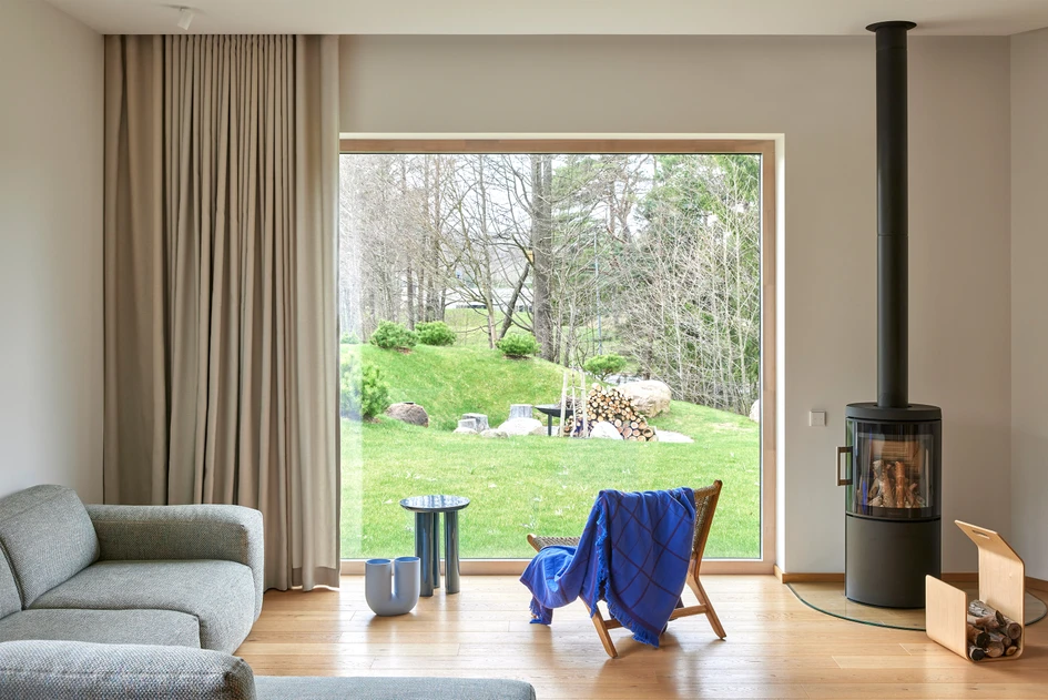 ‘Wood like honey’ is a residential interior project for a single family home, built in a green, recently developed neighborhood of ‘Žaliasis Slėnis’ (‘Green Valley’), Lithuania. The house is an illustration of a compact dwelling that provides multiple functions whilst the general sense of spaciousness is a part of the experience when entering the house. 140-sq.m area serves for four people. It accommodates living-dining space with an open kitchen and a fireplace, three bedrooms, 2 bathrooms, as well as a sauna and a spacious storage-utility room.