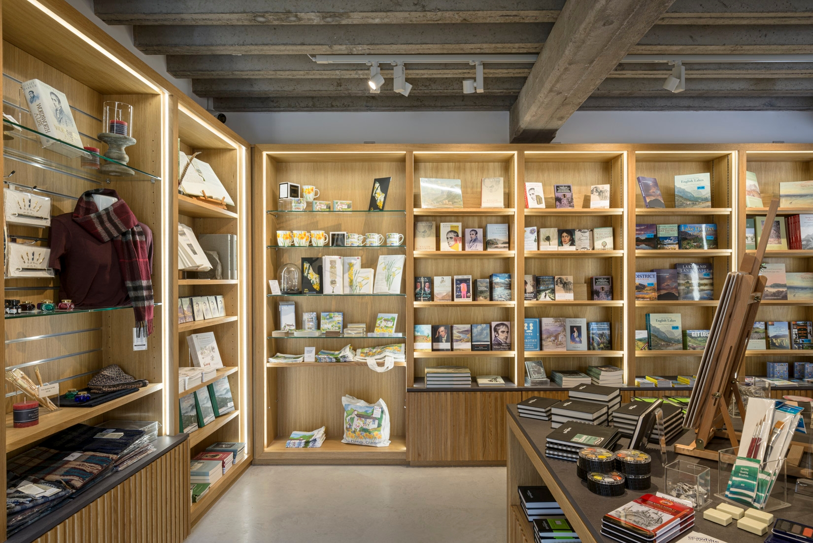 The main entrance to Wordsworth Grasmere leads visitors to a shop and ticketing area, before entering the new, double-height Museum orientation space. Here, quotations by Wordsworth are set within a dramatic, full-height light wall. Visitors then make their way to a former stable space that houses an immersive introductory film, before stepping over the threshold into Dove Cottage. Visitors return to The Museum via Dove Cottage’s Garden-Orchard, entering an expanded first floor space, which has been loosely arranged into four new galleries. Galleries One and Four are set to one side and Galleries Two and Three to the other, whilst a pause space in between offers views onto the gardens and surrounding landscape.