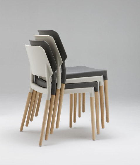Natural beech wood legs and seat in 6 different finishes: off-white (RAL9002), grey (RAL7010), black (RAL9017), brown (RAL8028), green (RAL6020) and red (RAL3011).