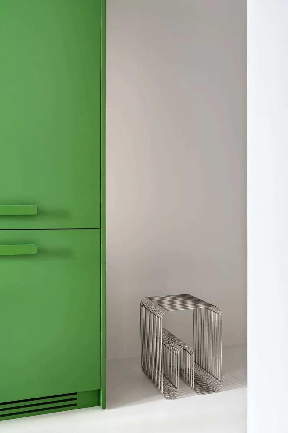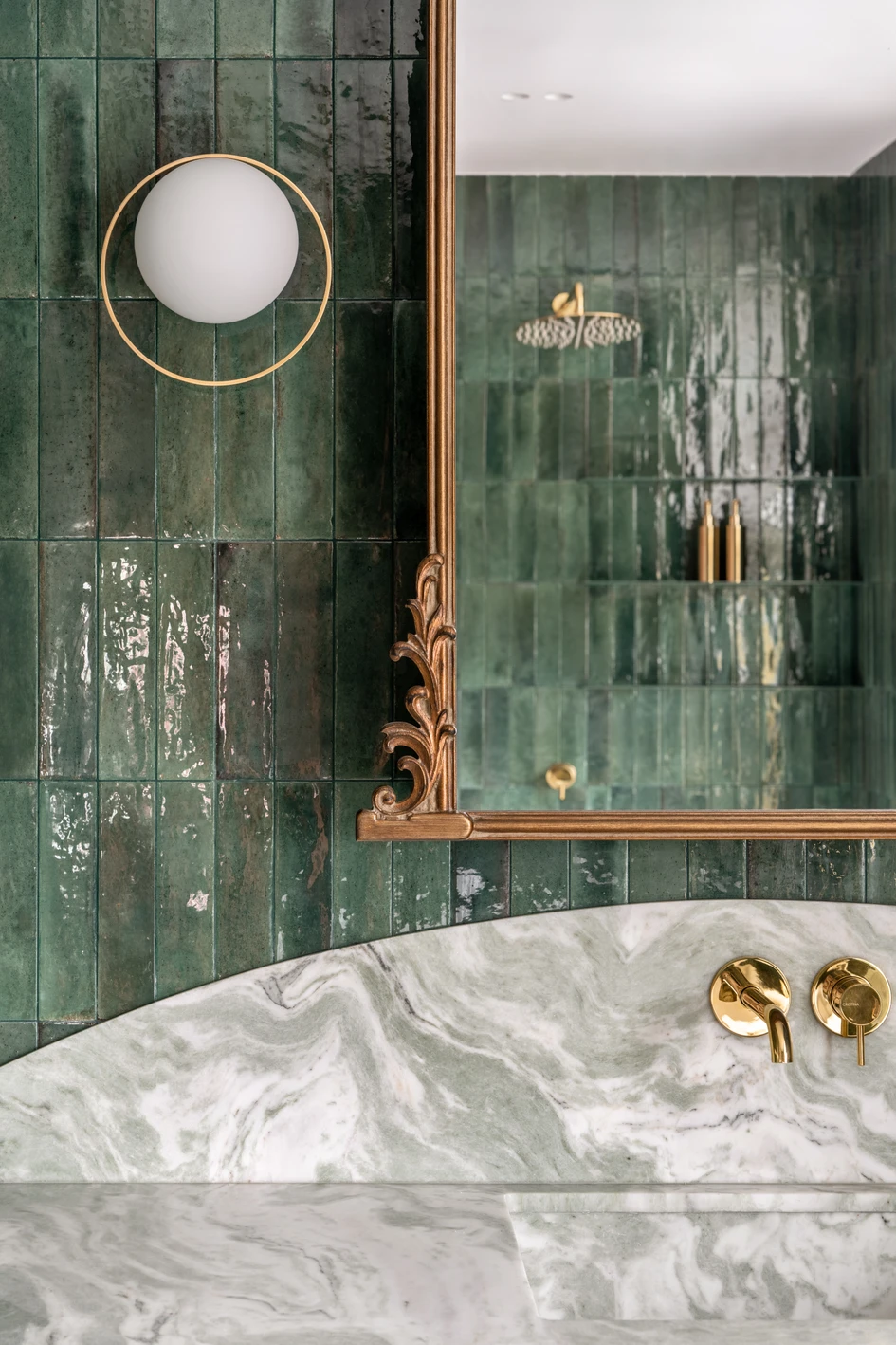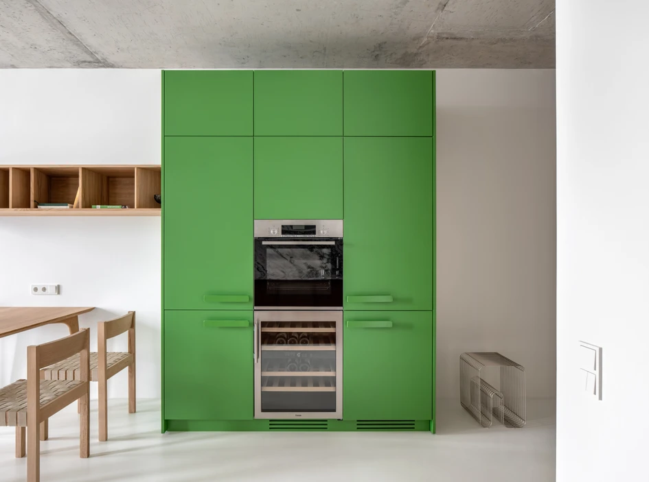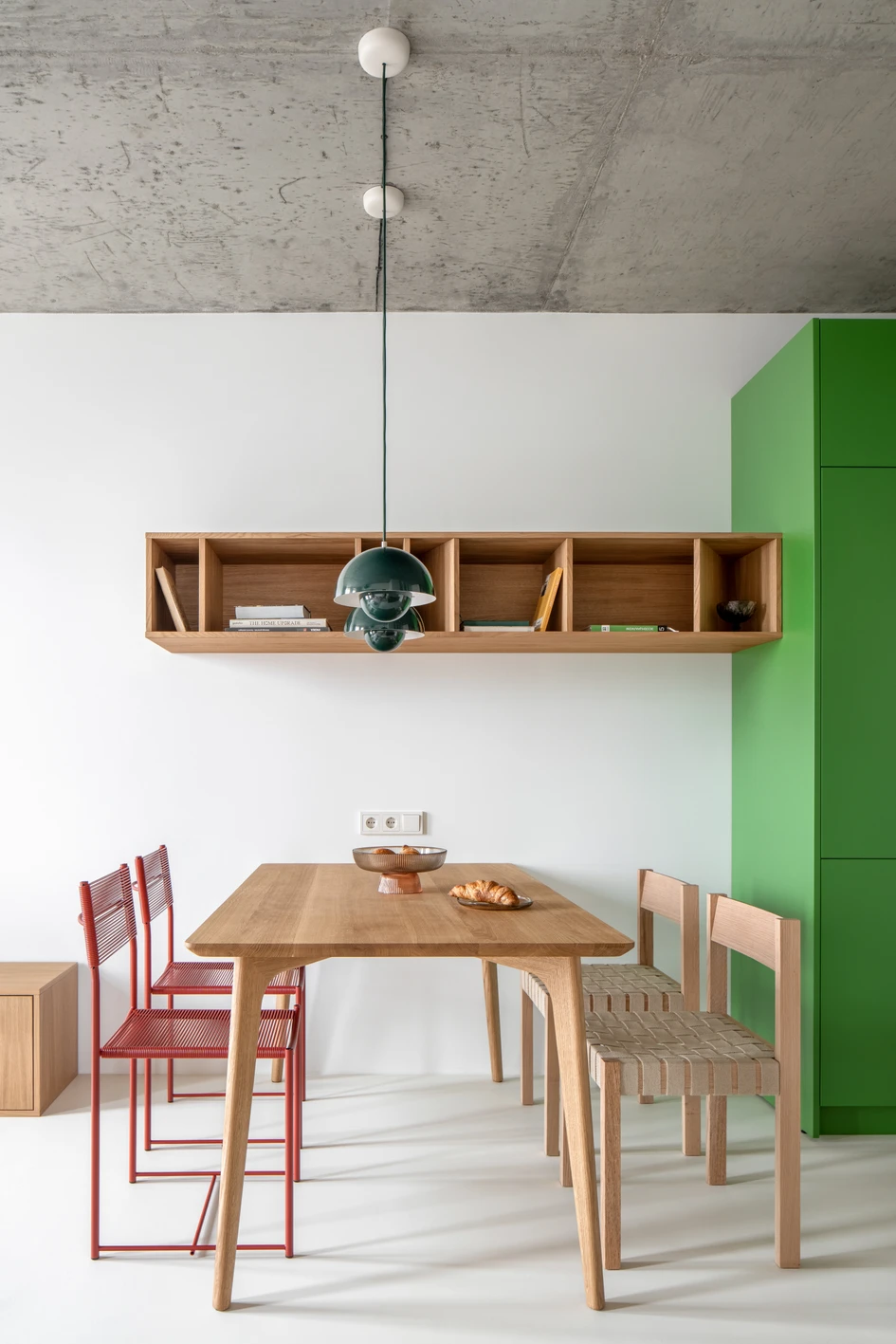 What sets this project apart is not just the colors used, but also the way they interact with natural materials like marble, wood, and concrete. The result is a space that feels both fresh and timeless.