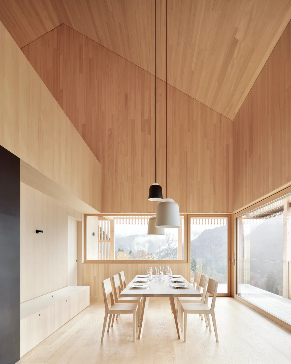The originally heterogeneous mixture of surfaces was transformed into a finely coordinated interplay of woods and surface treatments across the individual craftsmen. Thanks to the fastidious planning, as well as the interplay of the craftsmen the interior of the house, presents it like a huge piece of furniture.