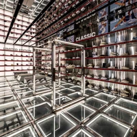 The walls assigned for the clothing and accessories zone are separated from the Sneakers Zone, they were intentionally designed with broken concrete walls revealing metallic finishes on the inside. This design concept aims to represent the Reebok brand's high-tech identity which aligns with the new contemporary trend by communicating a street-look vibe. It visualizes a superhero tearing through his daily outfit to reveal the original costume (like Superman). The cracked and broken parts of the concrete walls represent the brand’s identity based on the high-tech background with the addition of the visible metallic material.