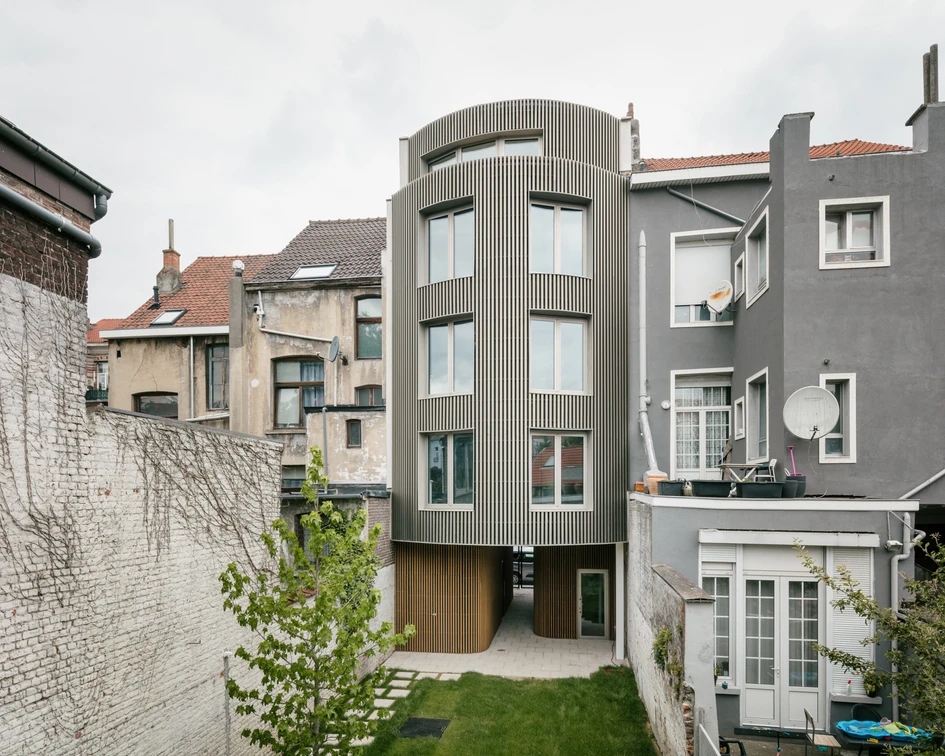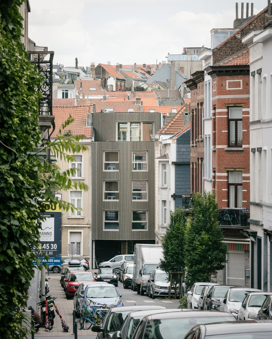 Situated on the thoroughfare of Côteaux Street within Schaerbeek's urban fabric, this venture unfolds amidst a densely woven metropolitan tapestry. The undertaking stakes its claim upon a parcel previously housing a street-fronting garages.