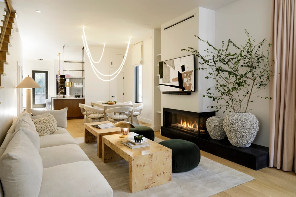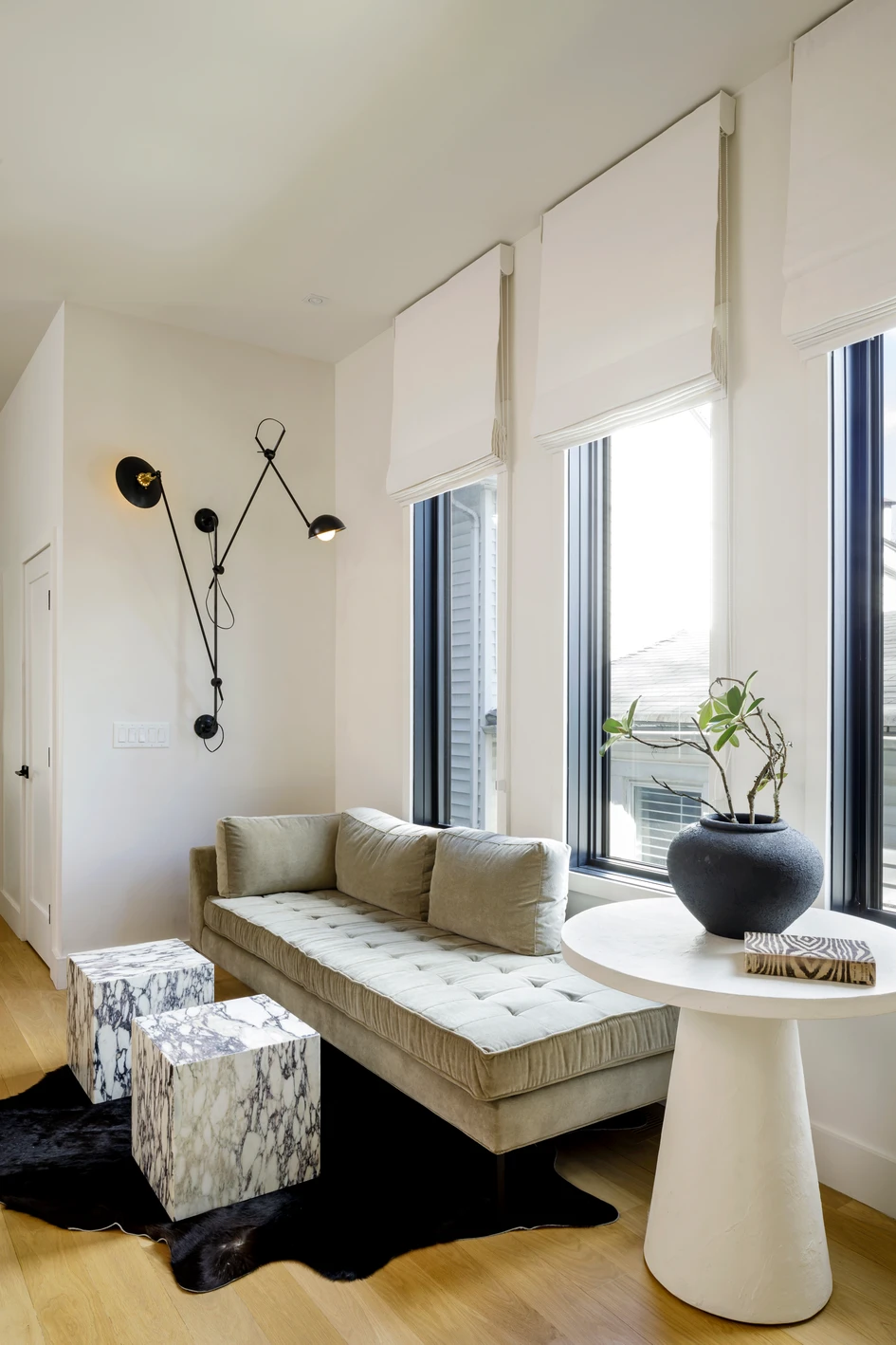 This was a new-construction build, with all white walls and builder-grade finishes. Also, the location was prime, the house needed to be made into a home for entertaining and hosting for our jet-setting client.