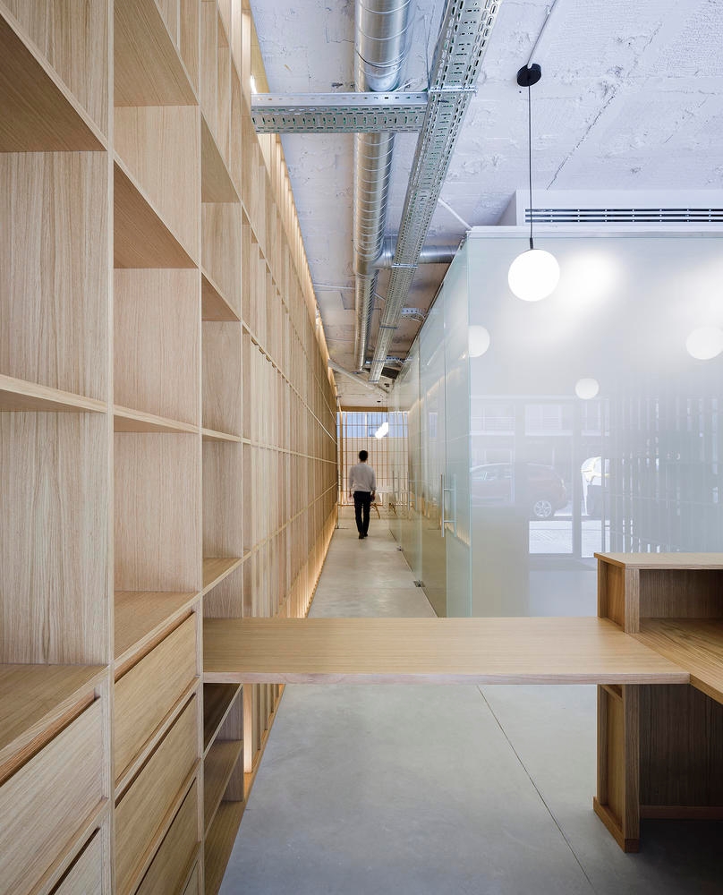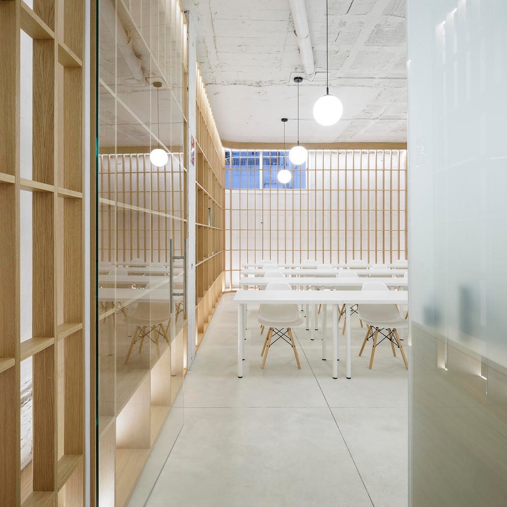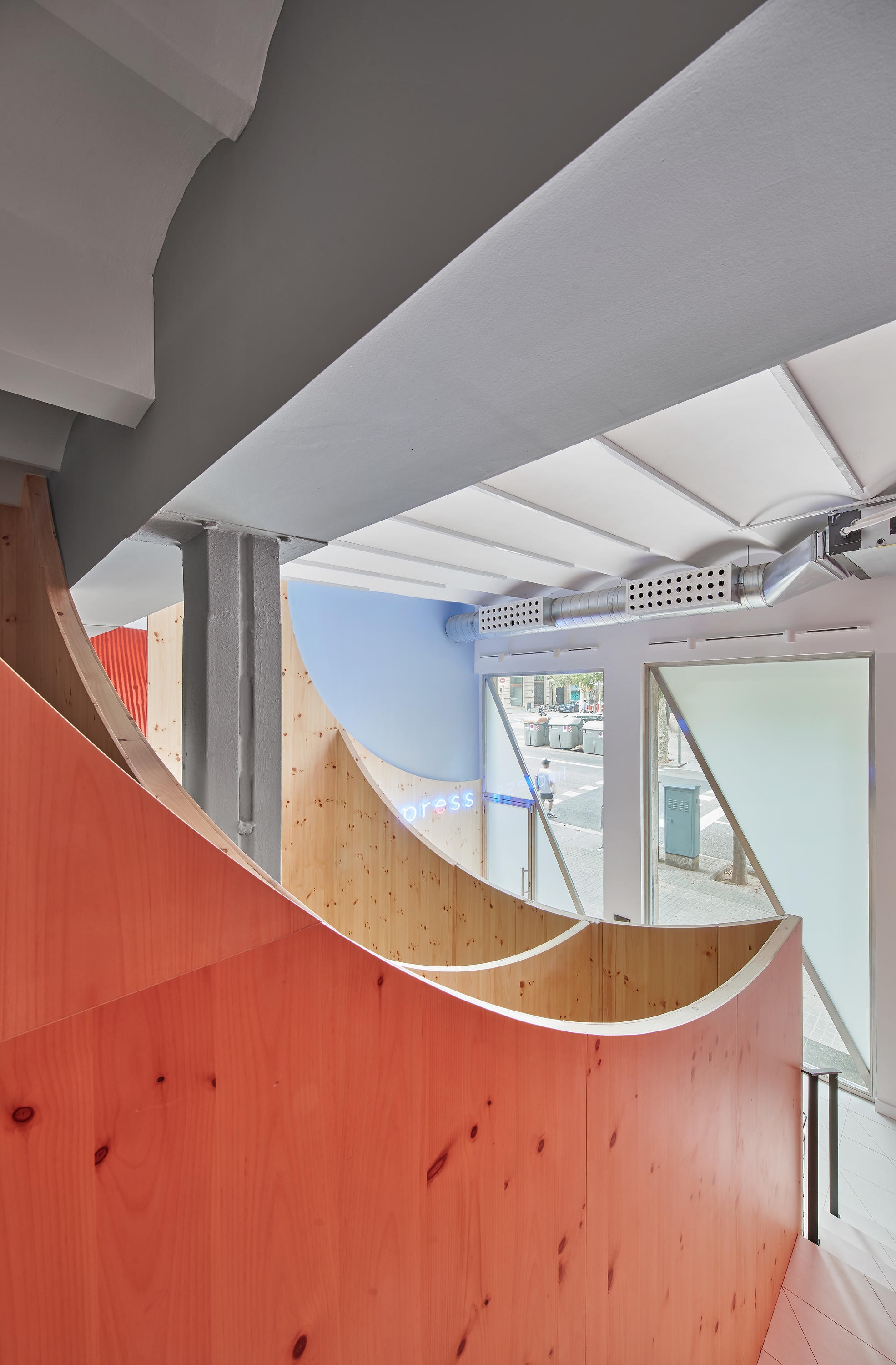 For their premises in Barcelona, Impress Dental Studio charged Raul Sanchez Architects with creating a fresh design which would move away from traditional dental clinic typologies. The design utilised the geometric characteristics of the space, while the material palette is dominated by the pinewood of the interior partitions, lending the clinic an uncharacteristic warmth.