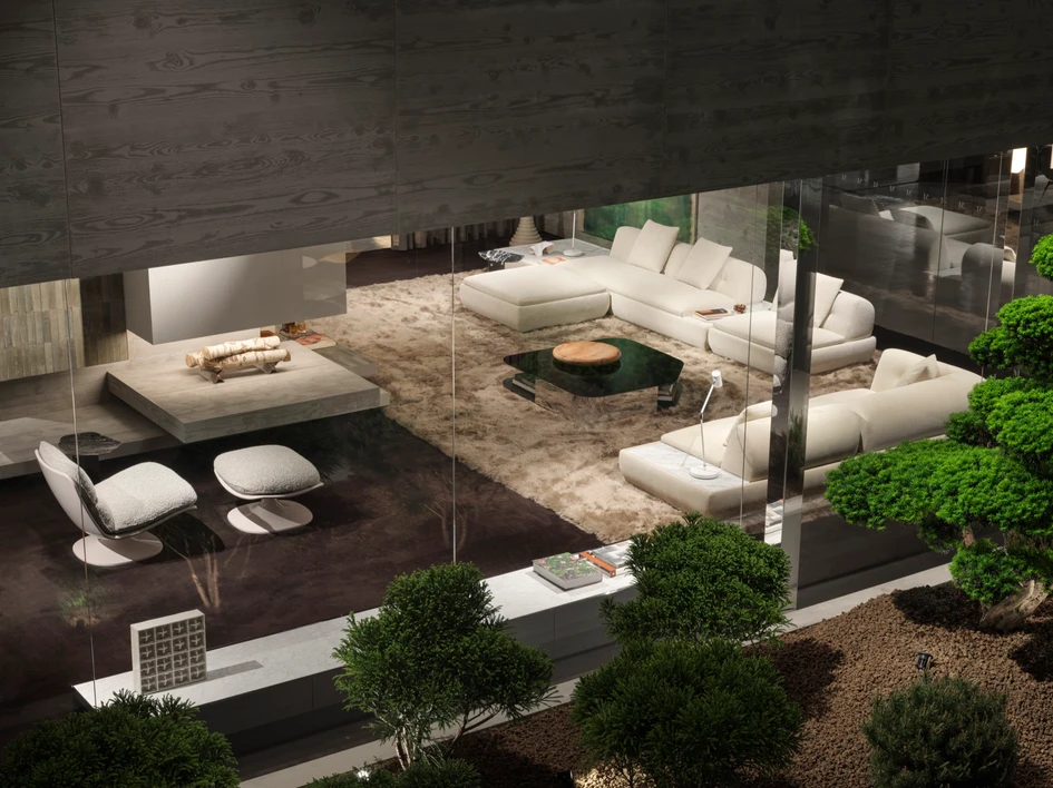 This year’s 4,500 sqm Minotti Pavilion unfolded an immersive experience within a succession of double height volumes. Designed by Minotti Studio and inspired by the enduring legacy of architect Rodolfo Dordoni, carved into the company’s DNA, the display skilfully combined space and materials to showcase the new projects of the 2024 Collection, with their 1970s influences in a contemporary key and powerful ability to narrate any interior.