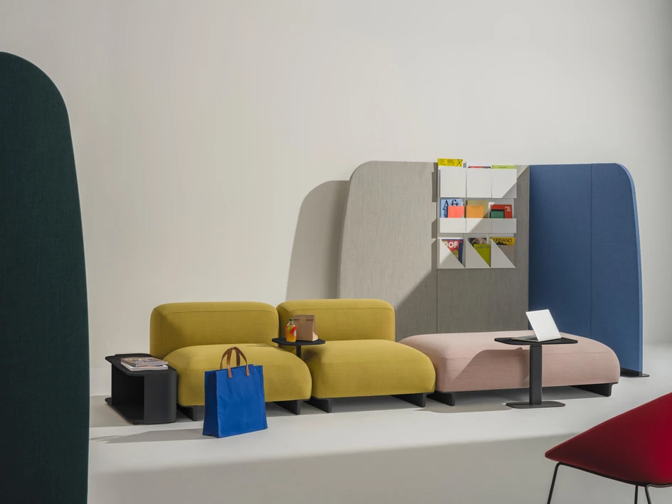 ‘More and more spaces are becoming a mixture of different elements,’ says Iwasaki. ‘We defined this mixture as “between” and came up with a system that can be used in a variety of spaces. The design is open and neutral so we believe we can create spaces that are uniquely Arper, from contract to residences.’