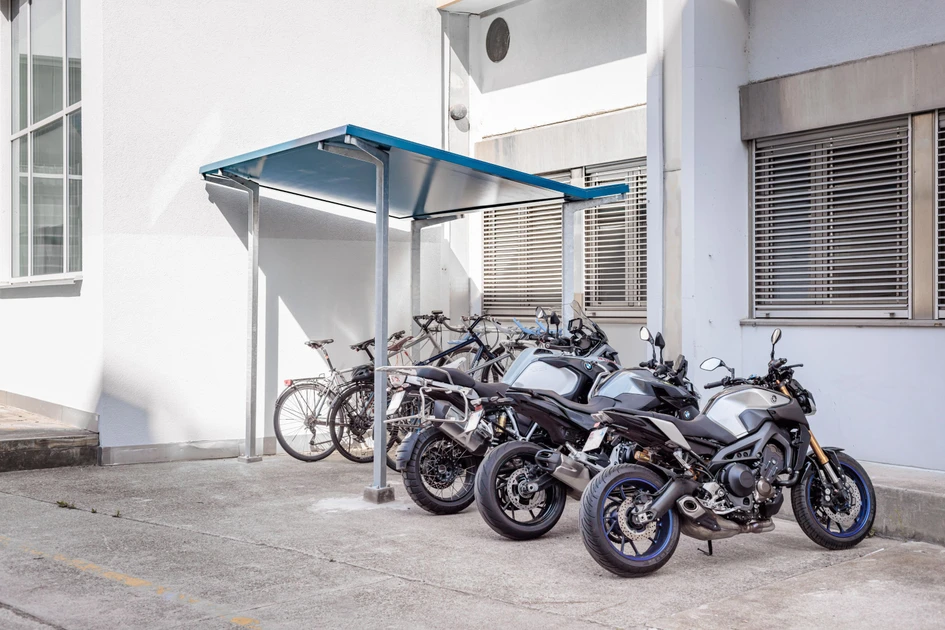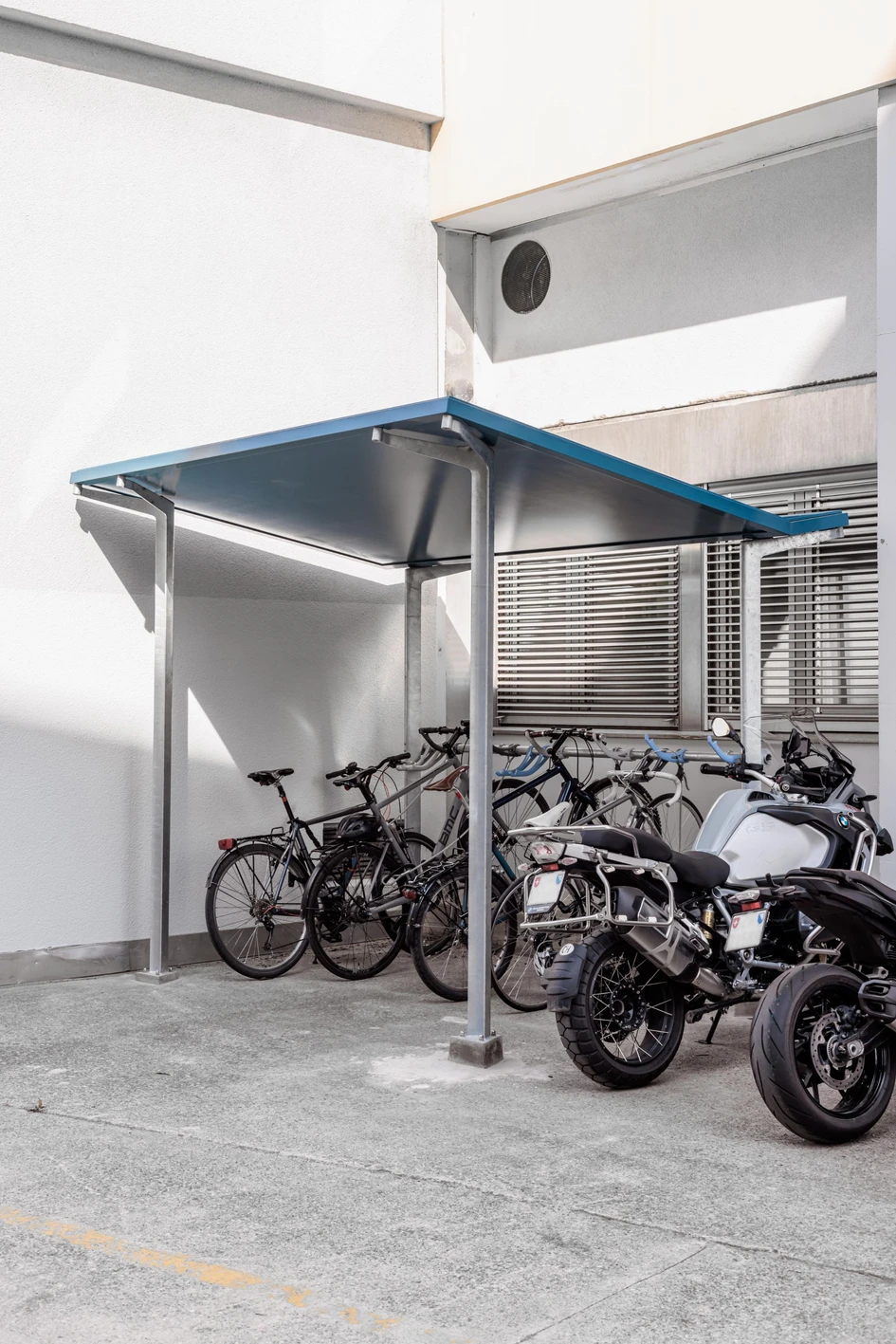 The Akira roof system can be used as a bicycle shelter, rain protection or offer much needed shade during hot summer months