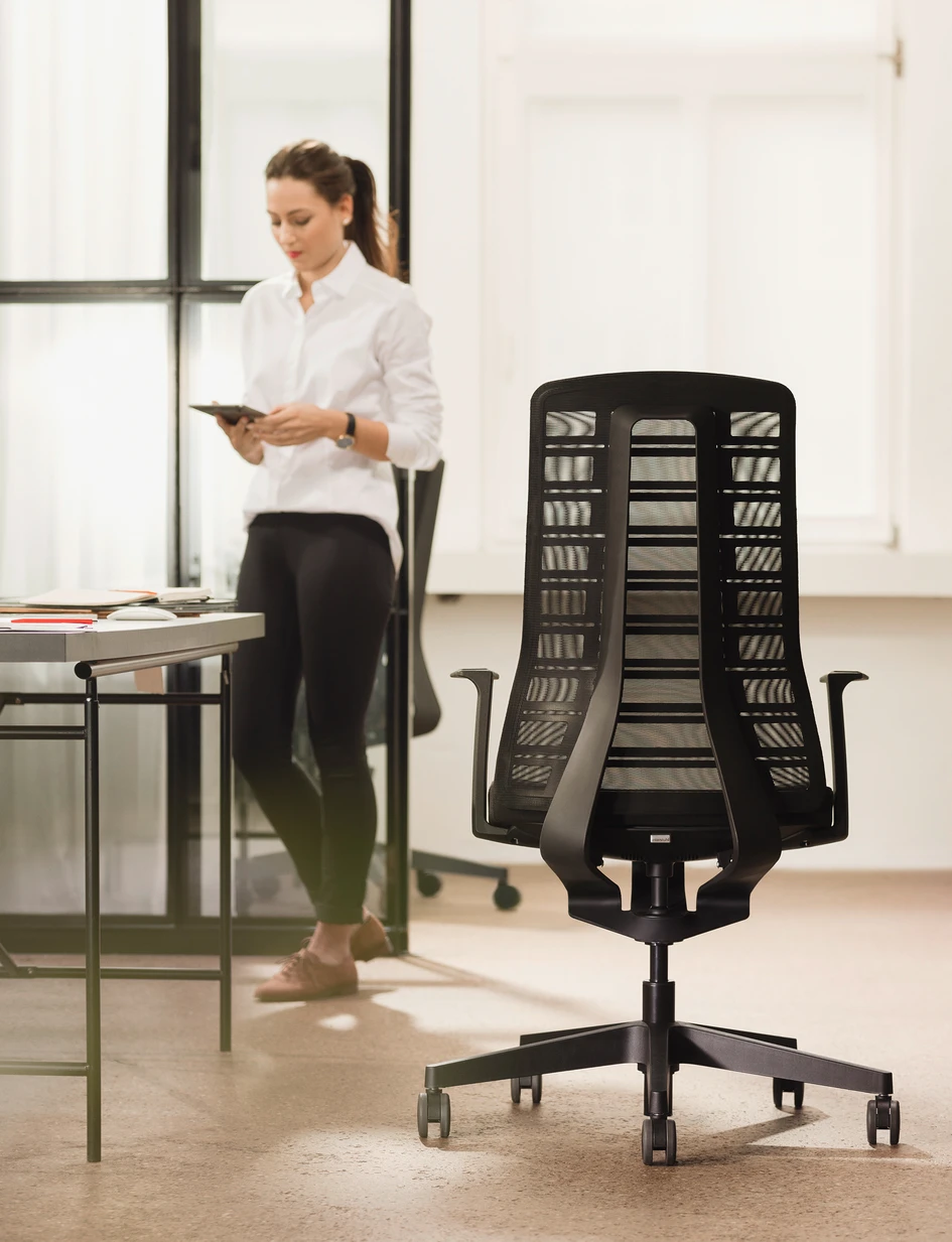 Interstuhl’s new office chair for dynamic sitting, PUREis3, adjusts automatically to the body and its movement – without complex, heavy mechanics. This is made possible by ‘Smart Spring’ technology, which was developed through five years of research
