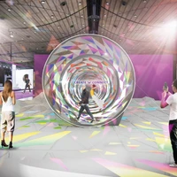 Jury members Susanne Schmidhuber, Peter Ippolito, Susanne Kaufmann and Thomas Hundt selected SCHMIDHUBER's "Connectivity Wheel" for the Flooring Spaces special area. The wheel combines light with material and creates a unique visitor experience