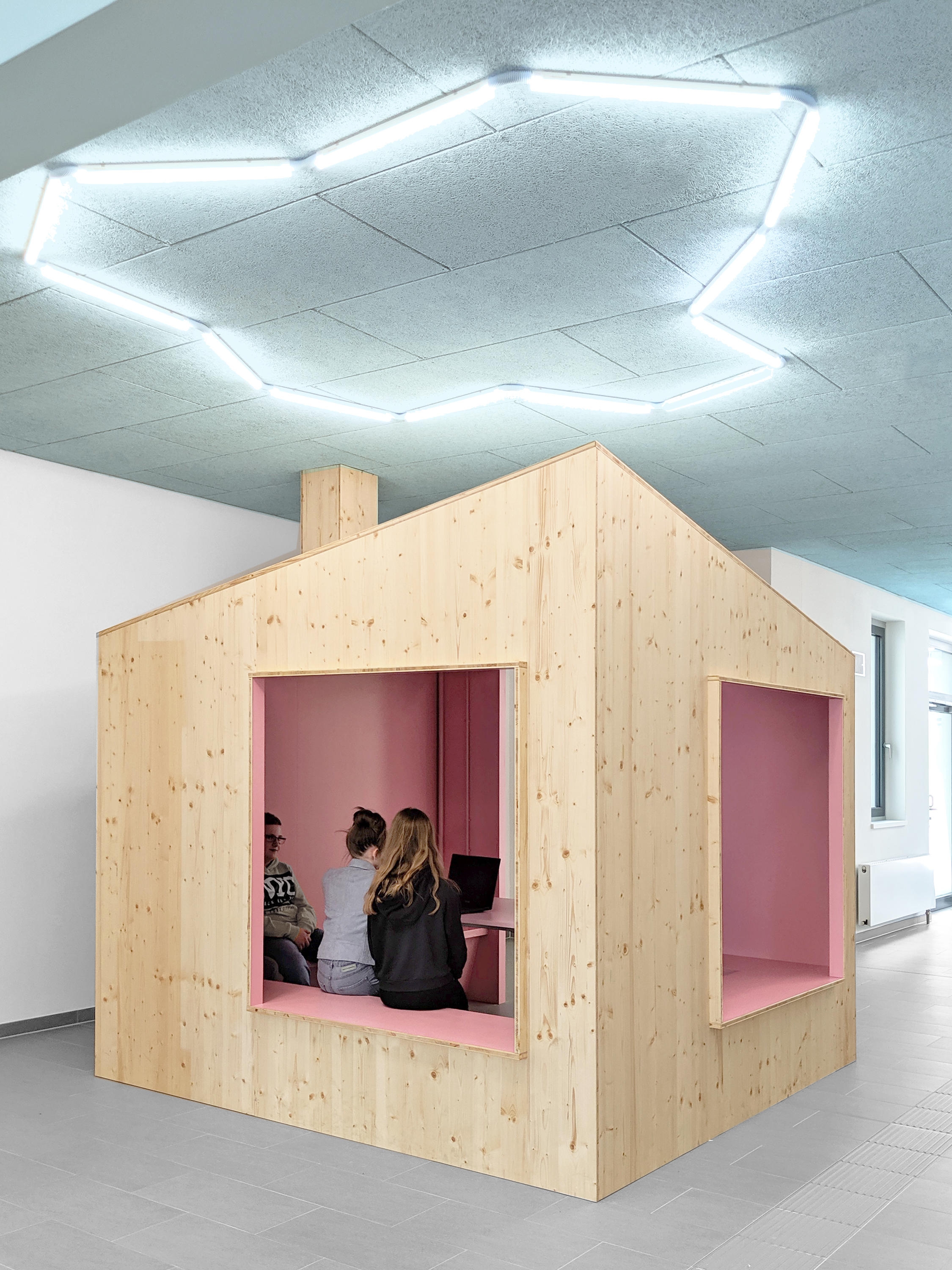 Rather than classrooms and hallways, Berlin Based Danish Architect Sigurd Larsen and his team developed a new vocabulary of spaces. Places for group work, project-based teaching, individual homework, as well as creative and physical activities, are found here.