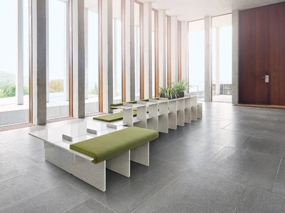 But Richard Lampert is also attracted by completely new materials and designs. One of the latest products in the collection is Pip, designed by Daniel Kern – variable, fireproof seating-furniture based on a playful idea: the side-supports, seat cushions and backrests can be put together in any configuration and combined with pushed-on upholstery parts. The almost sculptural furniture is ideal for escape route areas in schools, universities, museums and administration buildings, not only because of its design but also because it complies with fire class A2-S1 d0. Ideal for a short conversation, quick coffee break, or for charging mobile devices, Pip is a world-first, being the only furniture system with flame-retardant panels. The panels can be relied upon, as they are manufactured by the world-renowned company Knauf. “When I saw the design, all the people sitting on stairs around the world immediately came to my mind.” There is definitely a lot to discover in the often colourful collection. Whether in a restaurant, retirement home, traditional architectural practice or creative agency – many of the products are suitable for use everywhere and ensure that young and old feel at home in their surroundings.