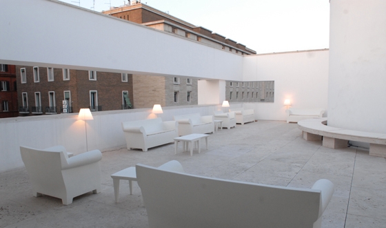 Kartell products have been specified internationally for exterior contract environments. Shown here, the Museo dell'Ara in Rome ('Bubble Club' sofa), Baita La Grolla in Courmayeur, Italy ('Louis Ghost' chair), and Residence Lot on Curacao ('Pop Duo' sofa)