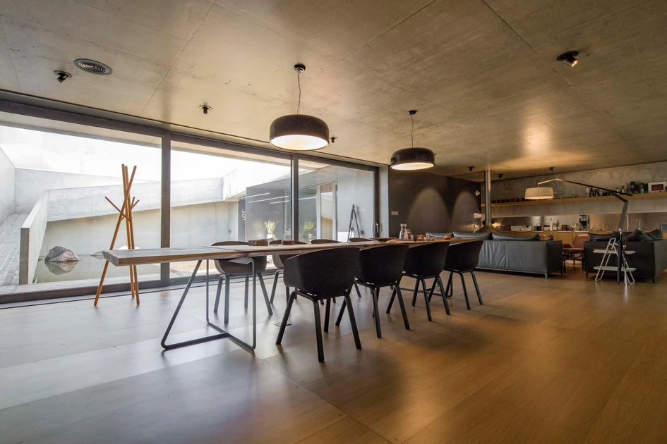 SAAW’s basement-level wine tasting venue with wine cellar underneath (top), and double parking huts on the island of Sylt in Germany (bottom). Photos: Nicholas Worley (top), Tobias Schneider (bottom)