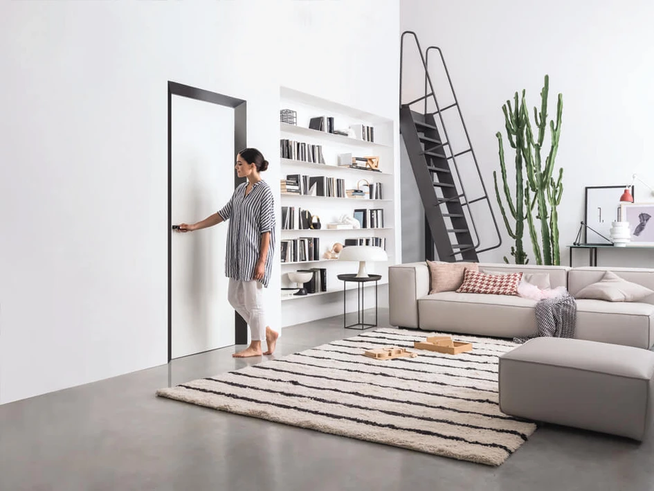 A flexible product, Eclisse 40 can be installed in a number of ways. Used to inset a doorframe on one side, the other can remain flush to the door. It can also be ordered to fit single or double doors