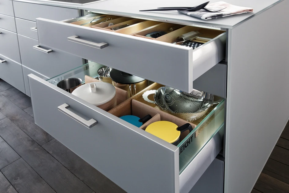 When applied to darker storage areas like kitchen drawers or deep cabinets and shelves, slim but powerful LED lighting strips like Light, from Leicht Küchen AG, can ensure everything stays visible. When recessed into the cabinet ceiling or under surface itself, like Tribeca from Panzeri, they make no physical impact on even the most minimalist of kitchens.