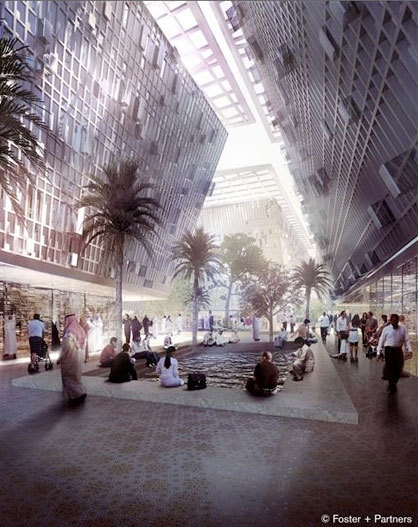 In the United Arab Emirates, which have for years now been famous for their major technocratic projects, the concept of the ideal city is experiencing something of a rebirth. About 30 km from Abu Dhabi Foster & Partners are planning a laboratory of the future in the desert. This will be completed by 2015 and will accommodate 50,000 people, supplemented every day by 40,000 commuters. The core of this laboratory is sustainability -- it is to be the first city which produces all of its own energy. Among other resources facilities for wind power and photovoltaic installations will provide the necessary energy, and up to 60% of waste water will be treated and recycled.
