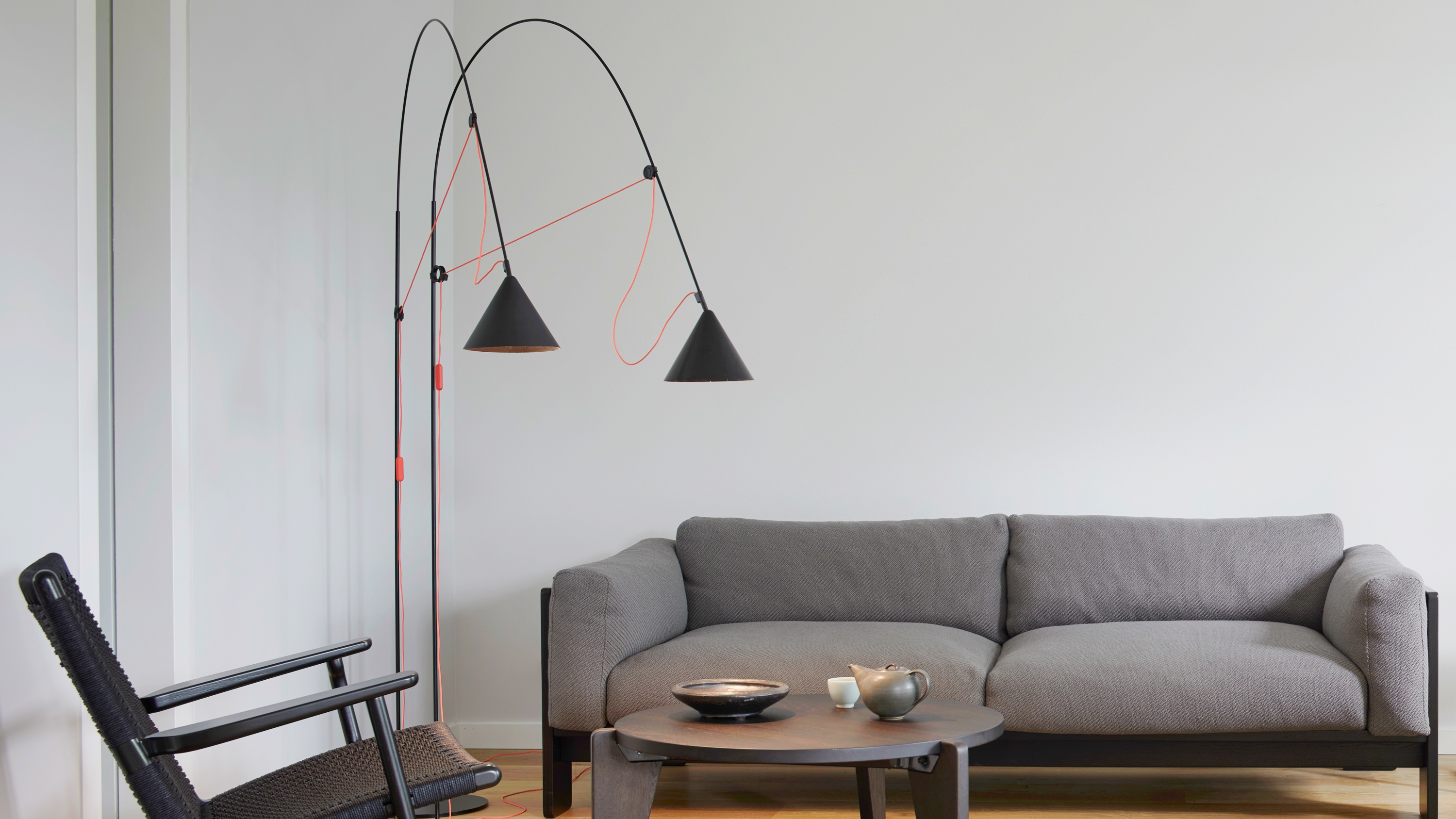 The AYNO lighting family is celebrating clean aesthetics and functional geometry. AYNO table S + Floor L. Photo: Peter Fehrentz