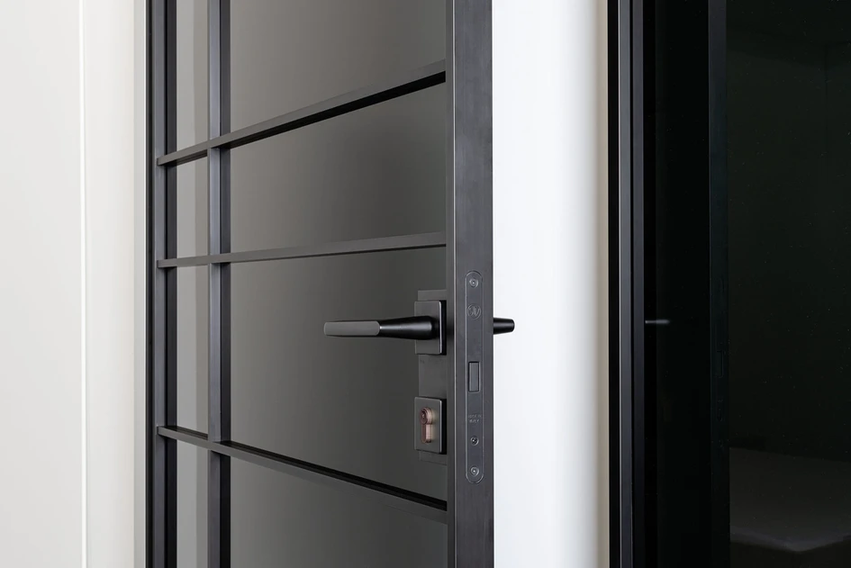 By extending the ‘Swing Door Slim Line’ with a second leaf, even large wall openings can be closed off in style. The visible surface can be designed both symmetrically or asymmetrically