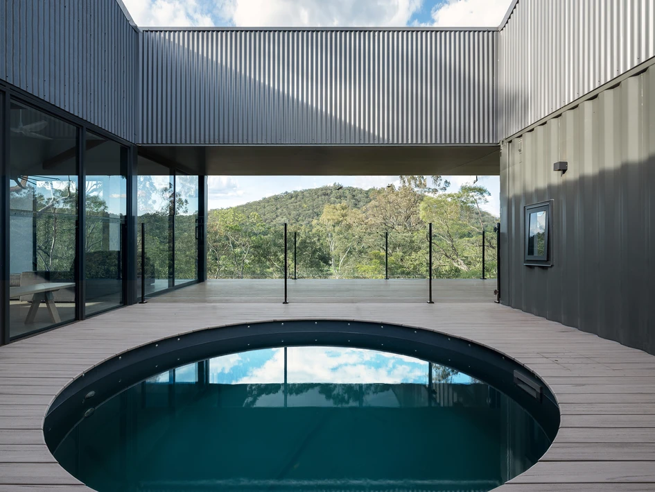 Colo Crossings House’s central courtyard plunge pool (top, middle) provides private relaxation while relinquishing the view to the interior living spaces that surround it. Photos: Tom Ferguson