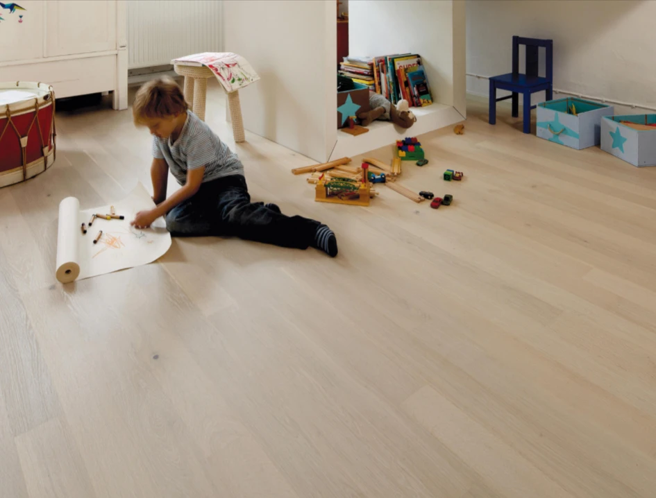 Natural oil penetrates the wood and leaves a naturally matte surface, while lacquers – available in gloss, silk or matte – give wood flooring more resilience to damage and staining. With more immediate resilience, wood flooring with lacquered finishes such as Cleverpark by Bauwerk Parkett are best for smaller projects with low traffic and minor damage, such as family homes. Meanwhile, for higher traffic public spaces, natural oil finished products like FLOORs Oak from Admonter Holzindustrie makes the inevitable scratches less noticeable and easier to fix.