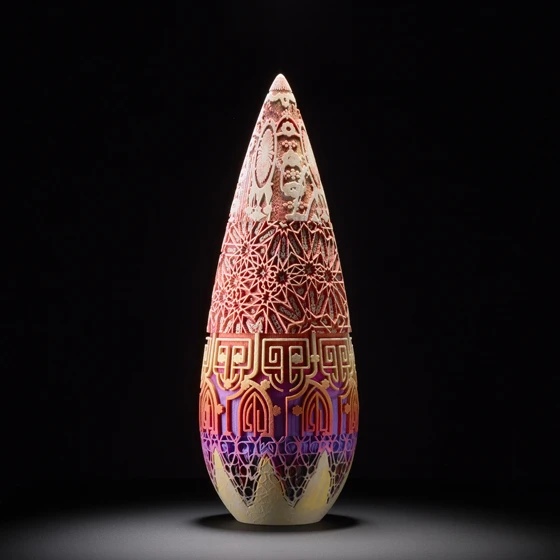 Young & Ayata is an architectural and design partnership working through objects, buildings and drawings to explore boundaries in architectural representation. Exquisite Corpse Cone draws upon the classic parlor game, creating an object out of combination and collaboration. The cone object references the tradition of ornamentation in human culture as a starting point for new kinds of relief, utilizing distinct elements assembled together. The cone was created in collaboration with Harmen Brethouwer and the different sections stitched together abstractly. Symmetry Series explores a visual and formal tradition by accumulating drawn lines and creating depth through overlay. With help from their titles, the drawings deceive the viewer at first glance—no element in the work is purely symmetrical. Young & Ayata’s Lima Roof proposal, a submission to the 2016 competition for the contemporary art wing extension at the Museum of Art Lima, features a maze of low walls that suggest an architectural work yet to be built or one already being worn away by erosion.