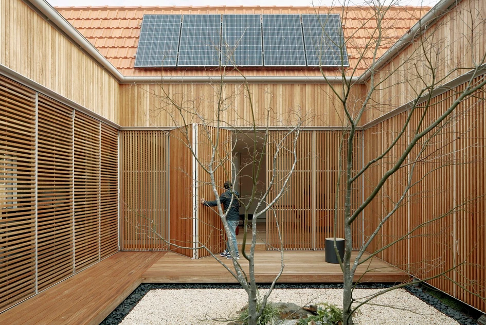 While much more reduced, the vegetation in the courtyard of this residence in Australia is just as effective. With a Japanese maple tree specified as the spiritual centre of the house, its site in the central dry garden is made visible through multiple sliding glass doors that reveal warm timber screens and cladding to further evoke the clients’ desired ambiance of tranquillity.In addition to visual warmth, project architects Ha Architecture reveal that the wooden structures also provide 'relief to the heavy materials of the existing house – and allow the inhabitants to adjust to changing light and climatic conditions.' By closing and opening the screens according to environmental factors, the glass openings into the courtyard can thus be moderated, allowing either full or partial views as well as additional insulation when needed.