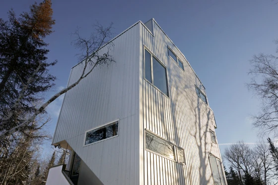 Elevated via a series of recycled-gas-pipe pilotis (in response to the site's high water table), Canadian office DIN Projects’ Manitoba Pole House features an interior that leaves the structure's frame exposed. Photos: DIN Projects