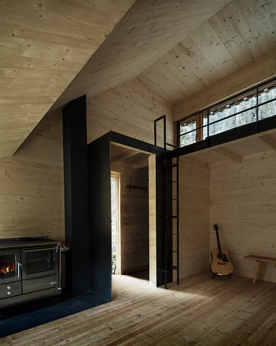 A rural retreat from city living in the form of Austrian office Raumhochrosen’s compact wood cabin, with large picture windows on opposing sides. Fotos: Albrecht Imanuel Schnabel