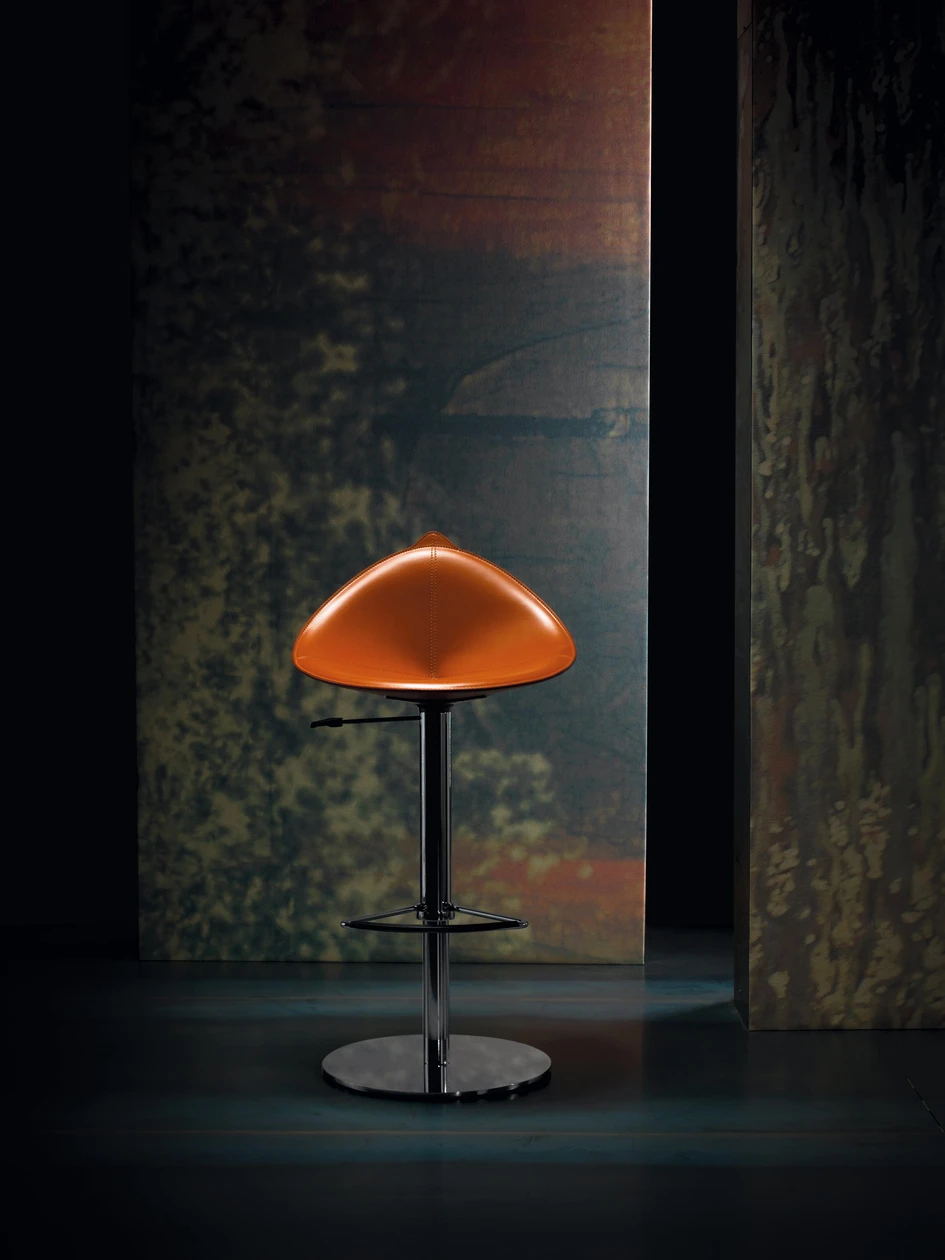 This balance between comfort and weight, both visual and physical, applies at the other end of the stool, too. Flat seats, either upholstered or moulded for comfort, are easier to lift and move, but those that put more weight on the importance of comfort, like Minotti’s Aston stool, feature larger curved backrests that hold the full lower back in place.