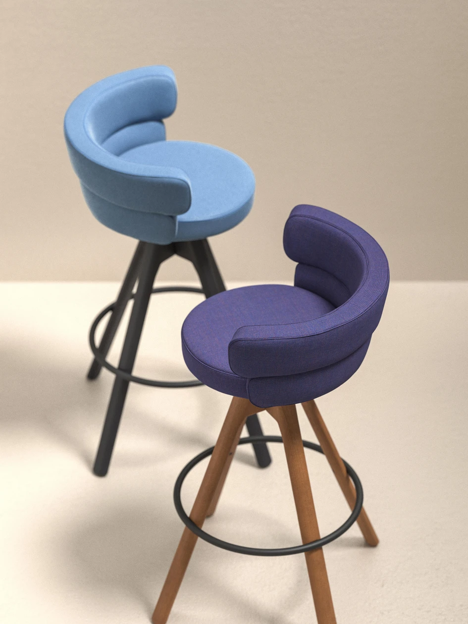 With the ability to tuck themselves under a counter, height-adjustable stools are increasingly functional, especially those that lie flat to aid cleaning. But the temporality of modern hospitality venues can mean stools need to be cleared away and stored elsewhere, often on a daily basis. Folding stools slim themselves down, but the extra movement in their joints puts additional strain on their construction. The use of thick plywood in Dvelas’ Ris high stools brings strength and stability, while the use of recovered sails gives rigidity and flex.The temporality of modern hospitality venues can mean stools need to be cleared away and stored elsewhere, often on a daily basis