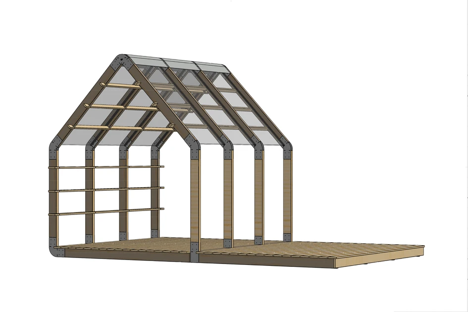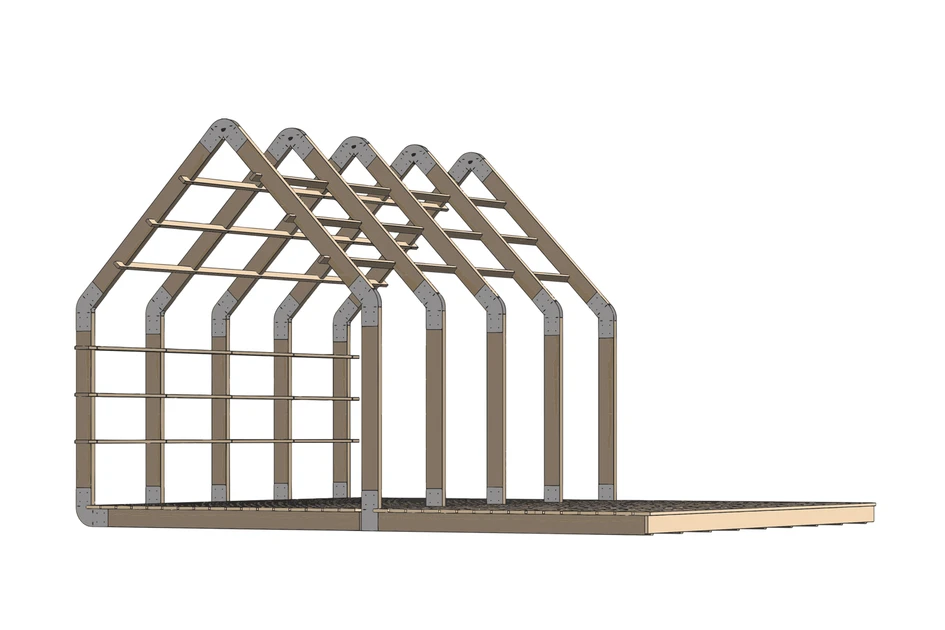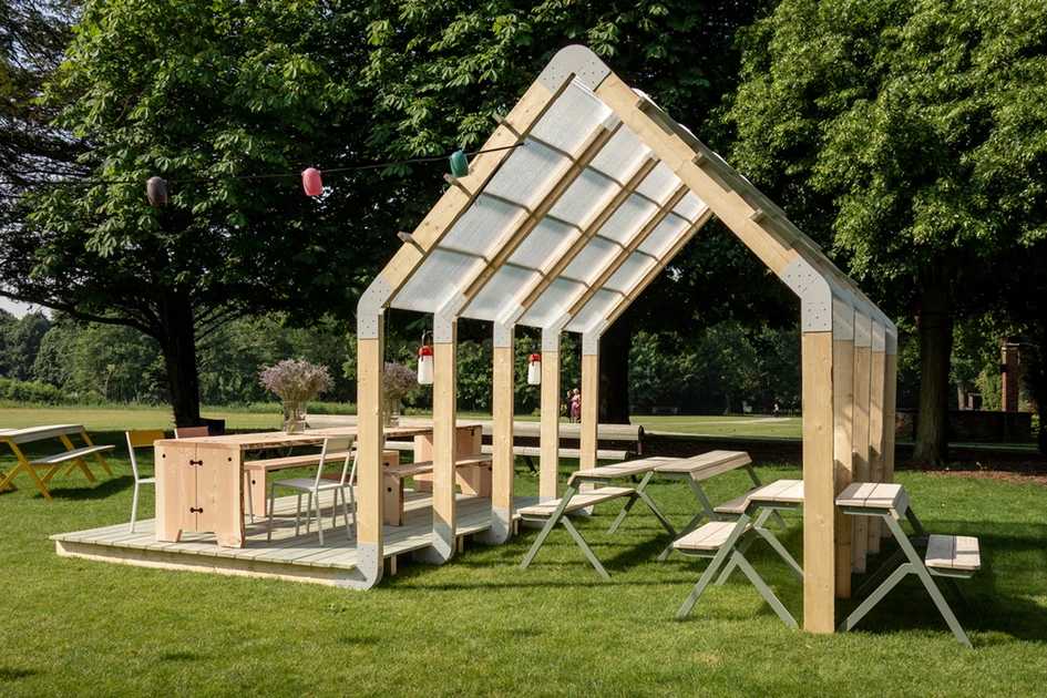 It is up to the user whether the Frame House offers a view of the sky and the surroundings or offers protection from the elements. The roof can be covered with fabric, steel, polymer plates or even plants. Weltevree offers polycarbonate panels as an optional Frame House roof (available separately). These slightly transparent panels provide shelter against rain while still letting light in. The horizontal beams of the wall can be placed on the preferred side of the Frame House to create room for storage or a vertical garden and also add a feeling of privacy.