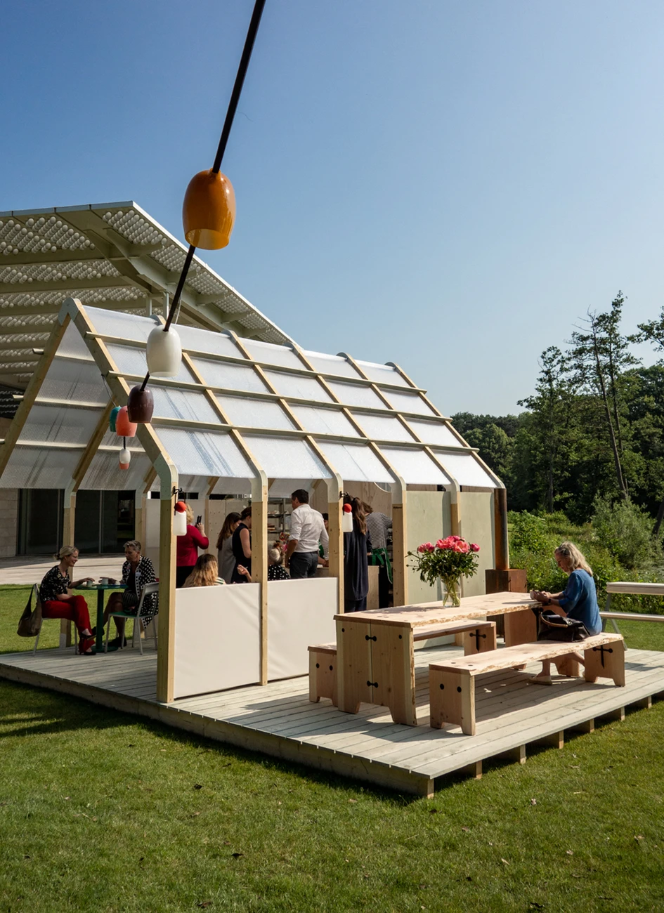 The Frame House will be added to the Weltevree collection in 2019, but it has already proven its applicability in several Weltevree projects. It was already used in 2013 to create an indoor pop-up store at Hôtel Droog in 2013. More recently, it was used at the IMM trade show of 2018, outdoors at the Rossana Orlandi garden during Salone del Mobile 2018 and in a very recent collaboration in the gardens of Museum Voorlinden in Wassenaar, The Netherlands.