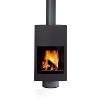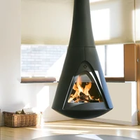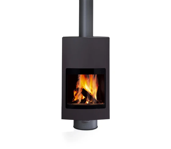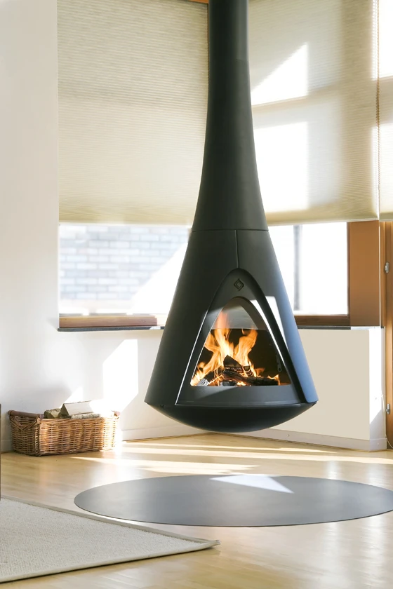 The 'Pharos Interior' stove, suspending from the ceiling, functions beyond its utilitarian purpose as an impactful interior-architectural element