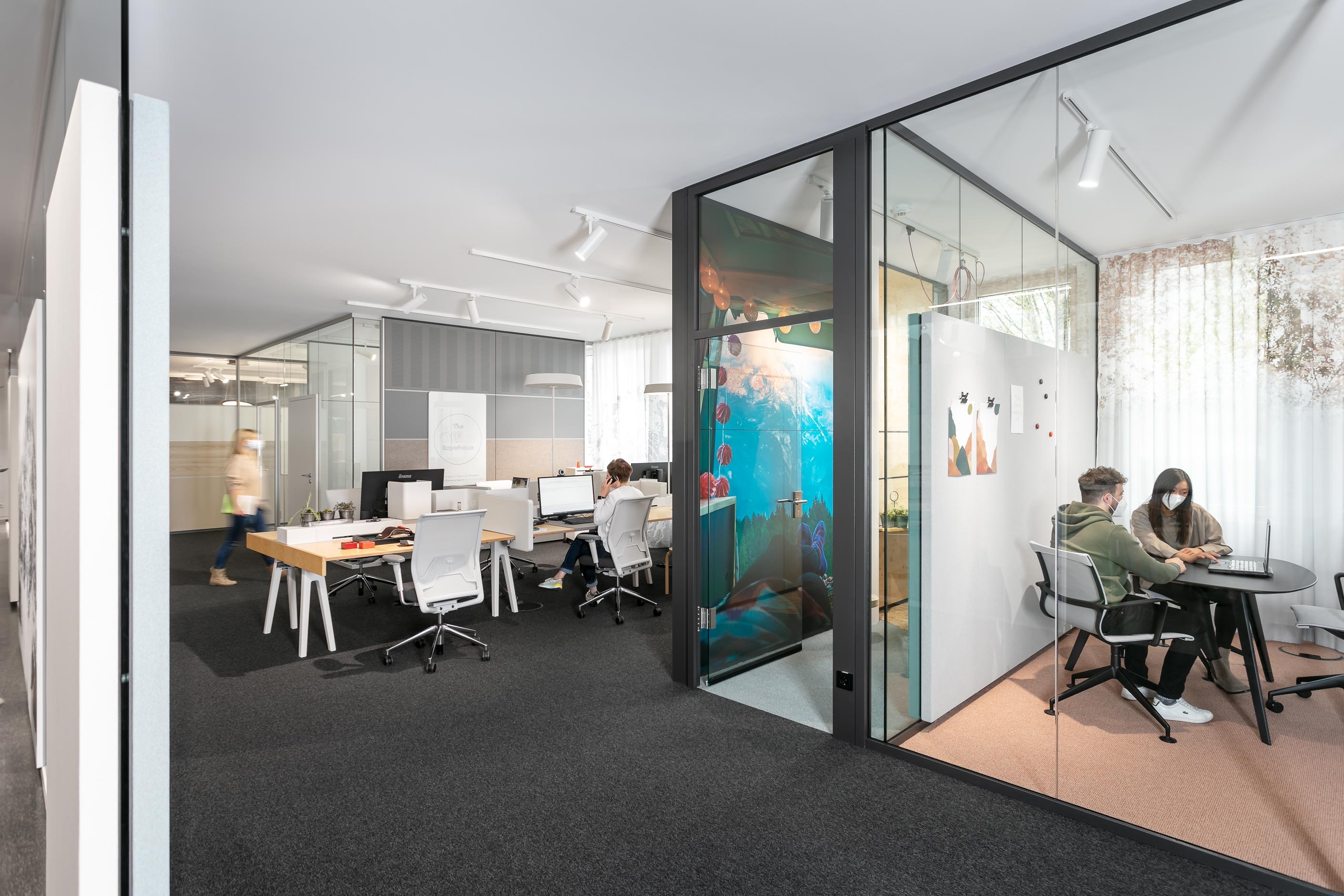 Co-creation with a view of the mountains of clouds – a great way to work creatively. In addition to the agile team area in the heart of the company, a Duo-Studio is available