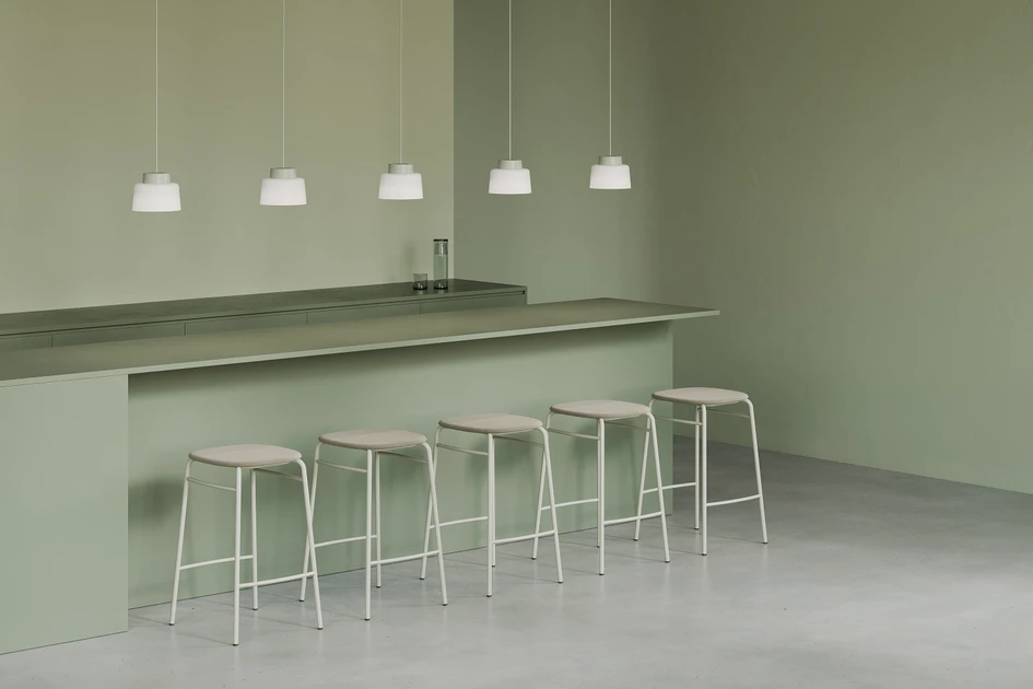 The foundation of the range is its central pendant module, cast in fine-textured, powder-coated zinc alloy, and available in graphite black, grey white, red brown, pine green, olive and blue, for customisation across different applications (whether the low-lit ambience of a café or restaurant, to more open-plan and industrial work areas and communal spaces).