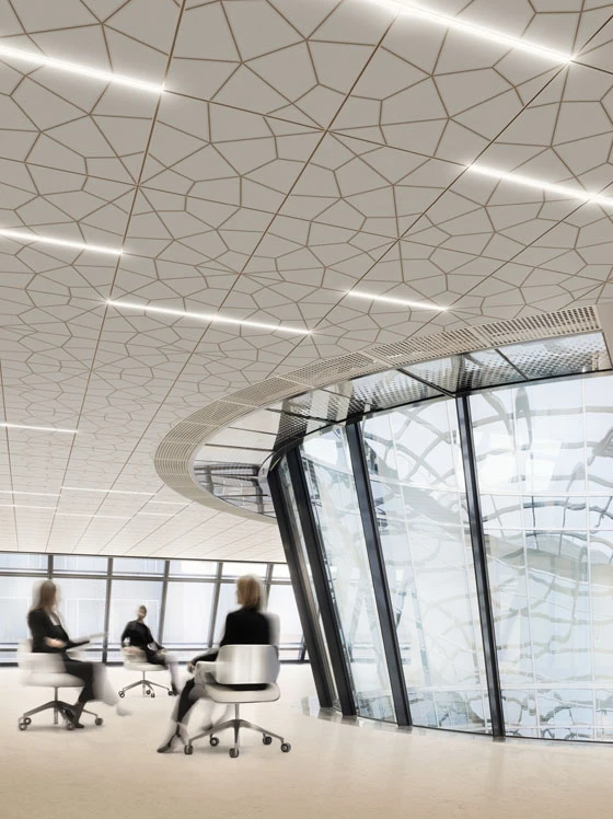 OWA, based in the Bavarian town of Amorbach, has been developing ceiling systems since 1948; first in woodfibre, then in mineral wool. Its latest offering, the 'OWAconsult collection', treats the ceiling as a three-dimensional object, imbuing it with optical interest as well as acoustic smarts.
