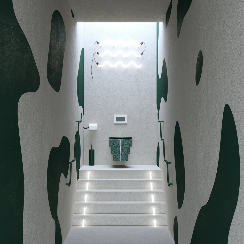 In addition to non-traditional toilets which challenge our perceptions of how they are supposed to look, Trone also designs the wider bathroom environment, for example on the nature-inspired hotel project pictured above in Ljubljana