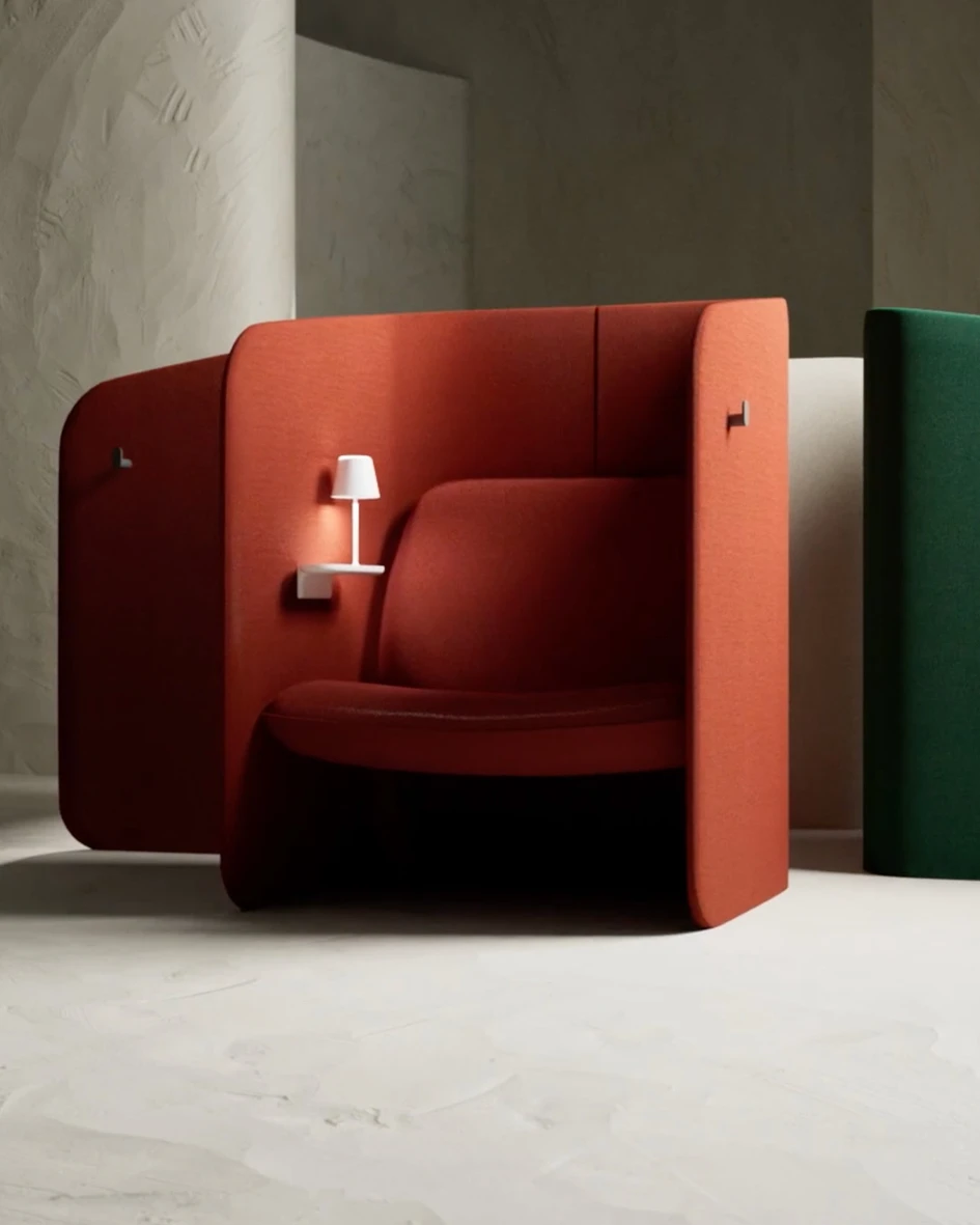 As long as life and work is on the move, booths are the answer for our momentary need to escape notice and focus the mind. Frida additionally is furnishing that escape with style and a sense of home from home, wherever we pick up that call.