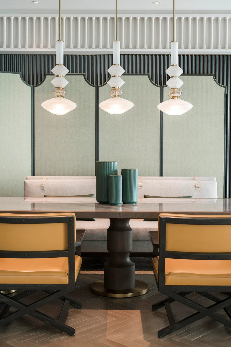 Materials and textures also played a significant role in embedding a sense of place. As detailed by design firm CCD, this was achieved by interpreting 'old materials in an innovative way, and creating a contrast of the old and new in different functional areas to produce varied spatial experiences.' Woven textures, French shutters, pendant lamps and prints show the fusion of modern and local history throughout the property.