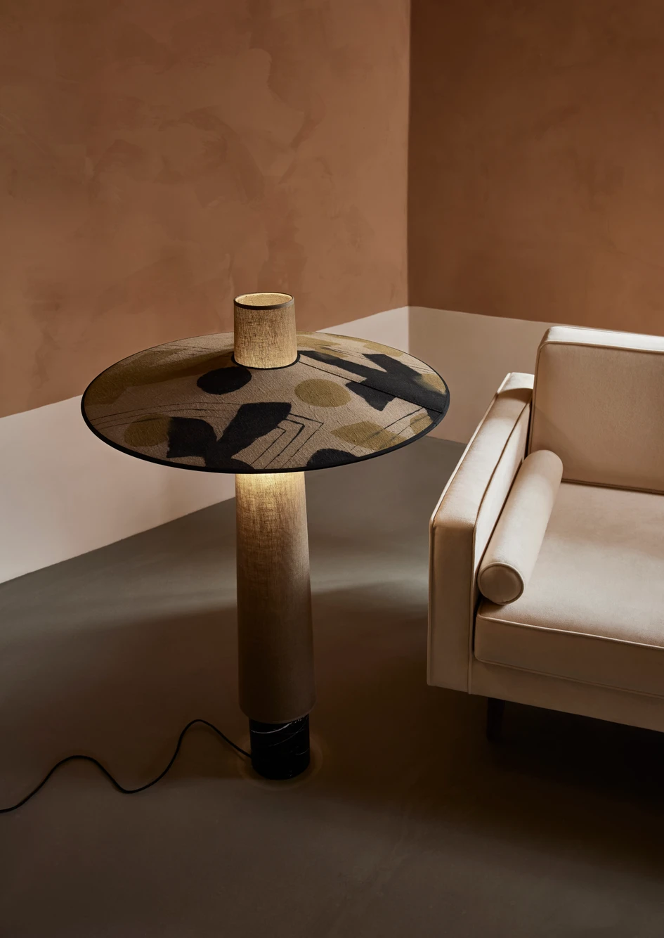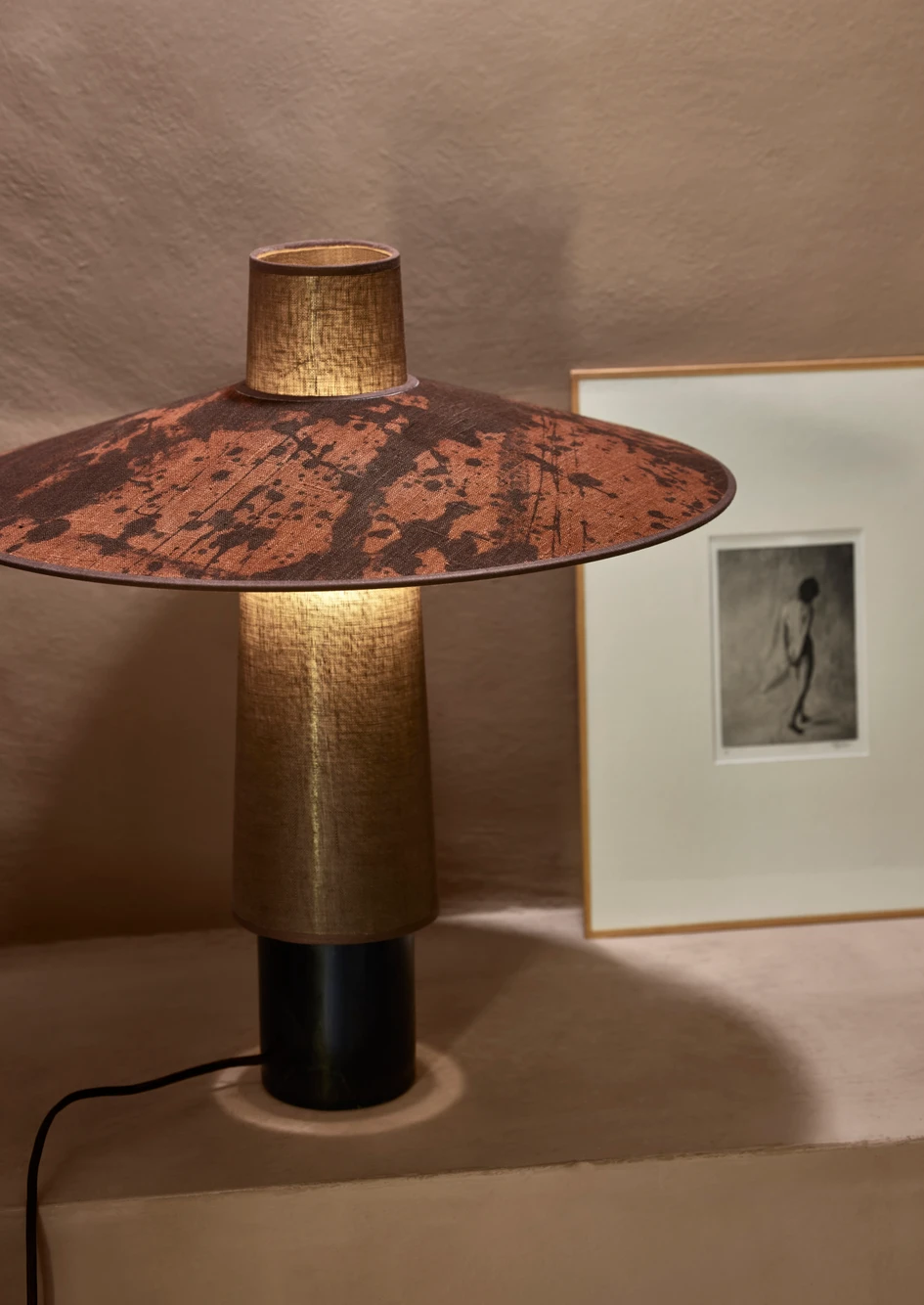 Proven to have a positive effect on our wellbeing, tangible artisanal gesture and natural materials are essential to the grounding, calming effect of each Thésée lamp. David Fabbri invited Kasia Woznica-Raulin, a specialist in vegetal dyeing to naturally pigment the handmade linen weave into colours including Terracotta, Graphite and Tonka: ‘We developed various patterns that evoke contemporary painting, notably through brush and dripping effects, and combined with the natural variation of tone, consequently, each lampshade is a unique piece that tells its own story, identity and gesture, as a symbol of the joint endeavour between humans and nature,’ says David Fabbri.