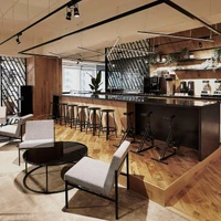 Albert Angel’s meditative boutique Kwerk co-working office has a 24-hour onsite gym and a yoga studio, giving employees a private members' club feeling while they’re at work