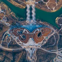 The butterfly-shaped Century Pavilion lines stepped walkways atop its floral canopy (top), from where ecological installations can be viewed (middle), accessible via rippled bridge. Photos: Wenyi Liu
